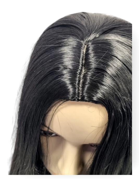 Superpitkä peruukki keskijakauksella, musta (80cm)