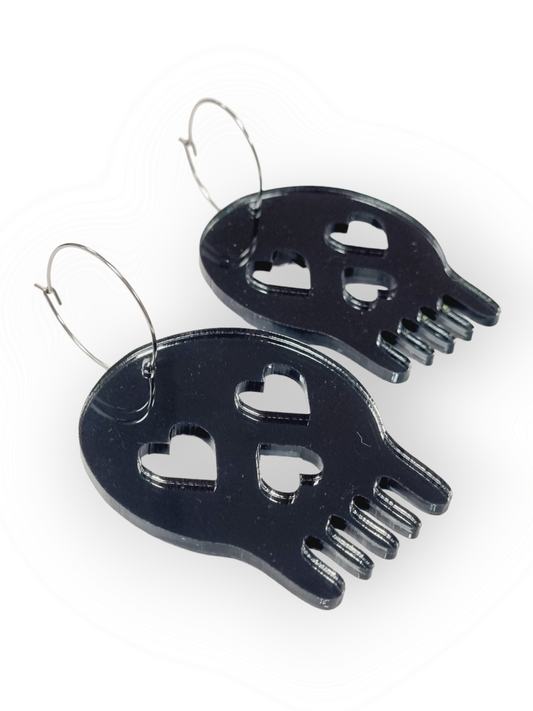 ILONE korvakorut Giant Heart Skull, mirror steel