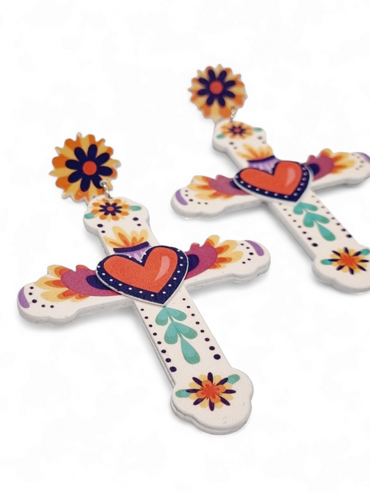 ILONE korvakorut Giant Heart Skull, mirror pink