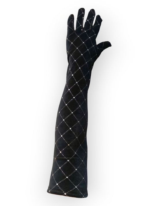 Pitkävartiset samettikäsineet glitterkuvioinnilla