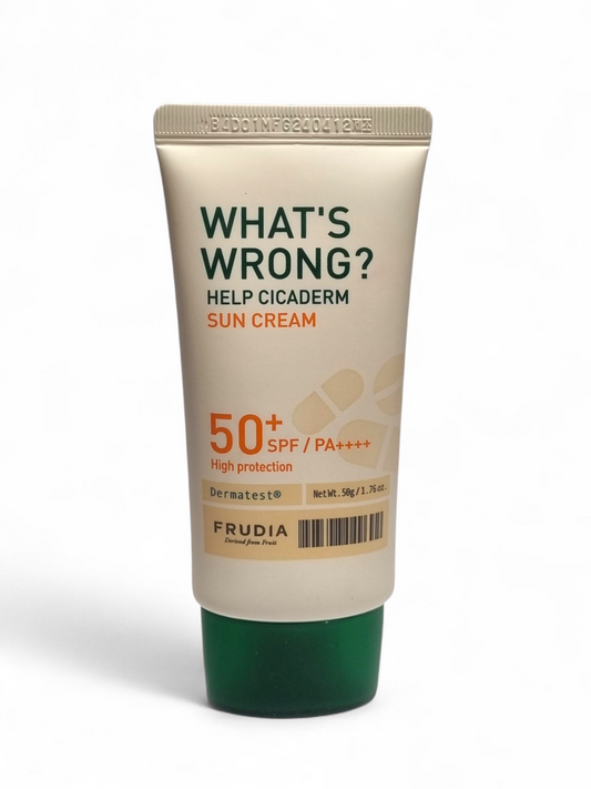 FRUDIA What's Wrong Cicaderm Sun Cream SPF 50+ (ihoa rauhoittava aurinkovoide)