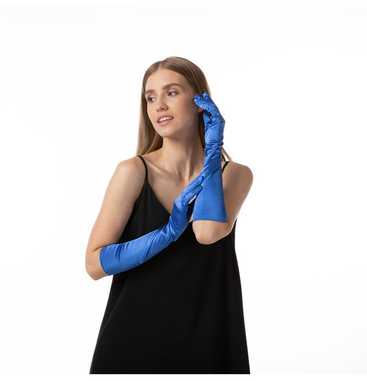 Satiinikäsineet rypytetyllä varrella, valkoinen (M-XL)