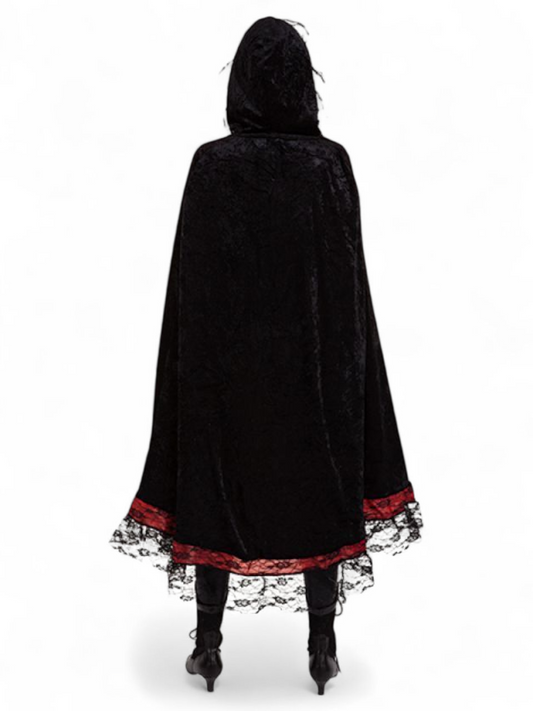 Hupullinen samettiviitta pitsikoristeilla Deluxe