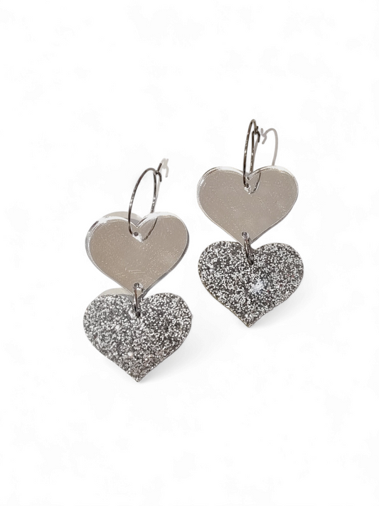 Ruffle Army korvakorut Double Heart Silver Mirror, rengas