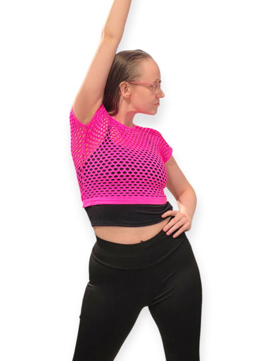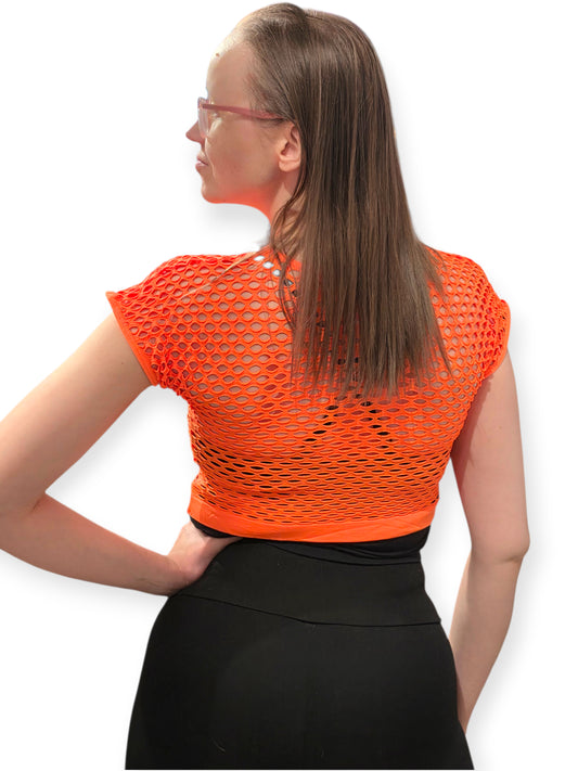 Lyhythihainen crop top verkkoa, neonoranssi (UV)