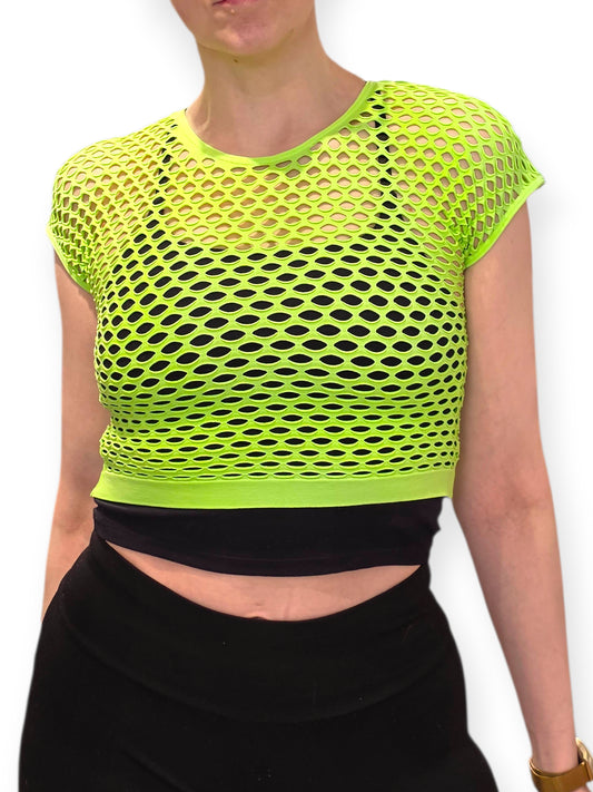 Lyhythihainen crop top verkkoa, neonkeltainen (UV)