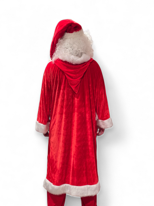 Joulupukin mantteli hupulla, taskuilla ja vyöllä
