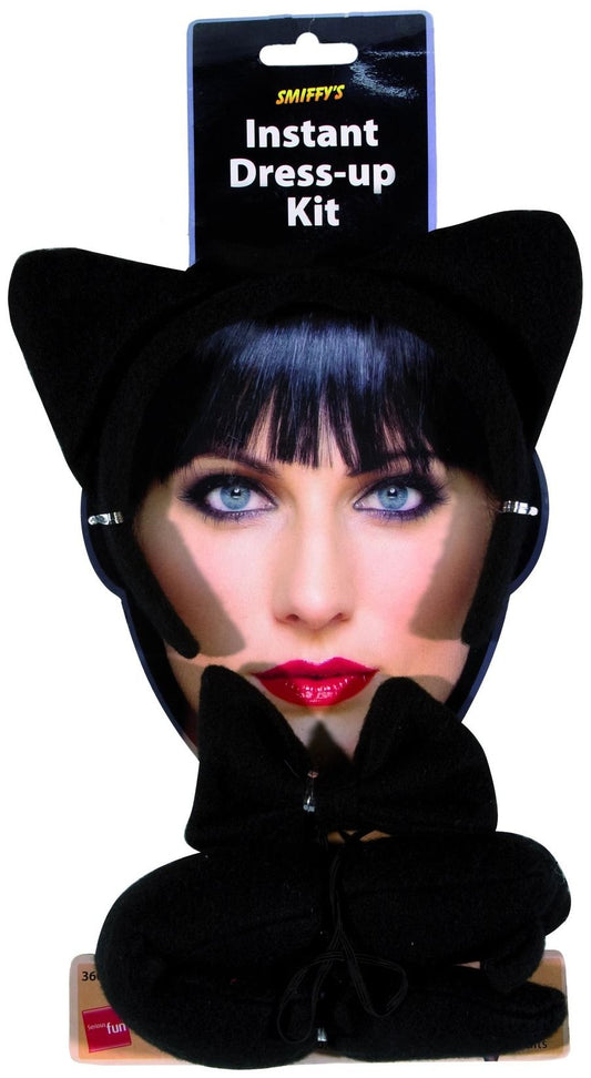 Eläinsetti Musta Kissa (korvat, häntä, rusetti)