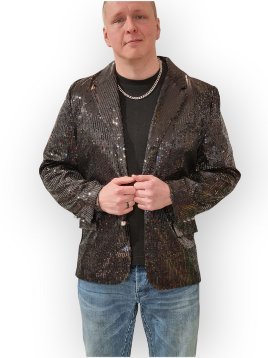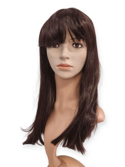 90-luvun showpainijan setti (peruukki, viikset, huivi ja lasit), tummanruskea