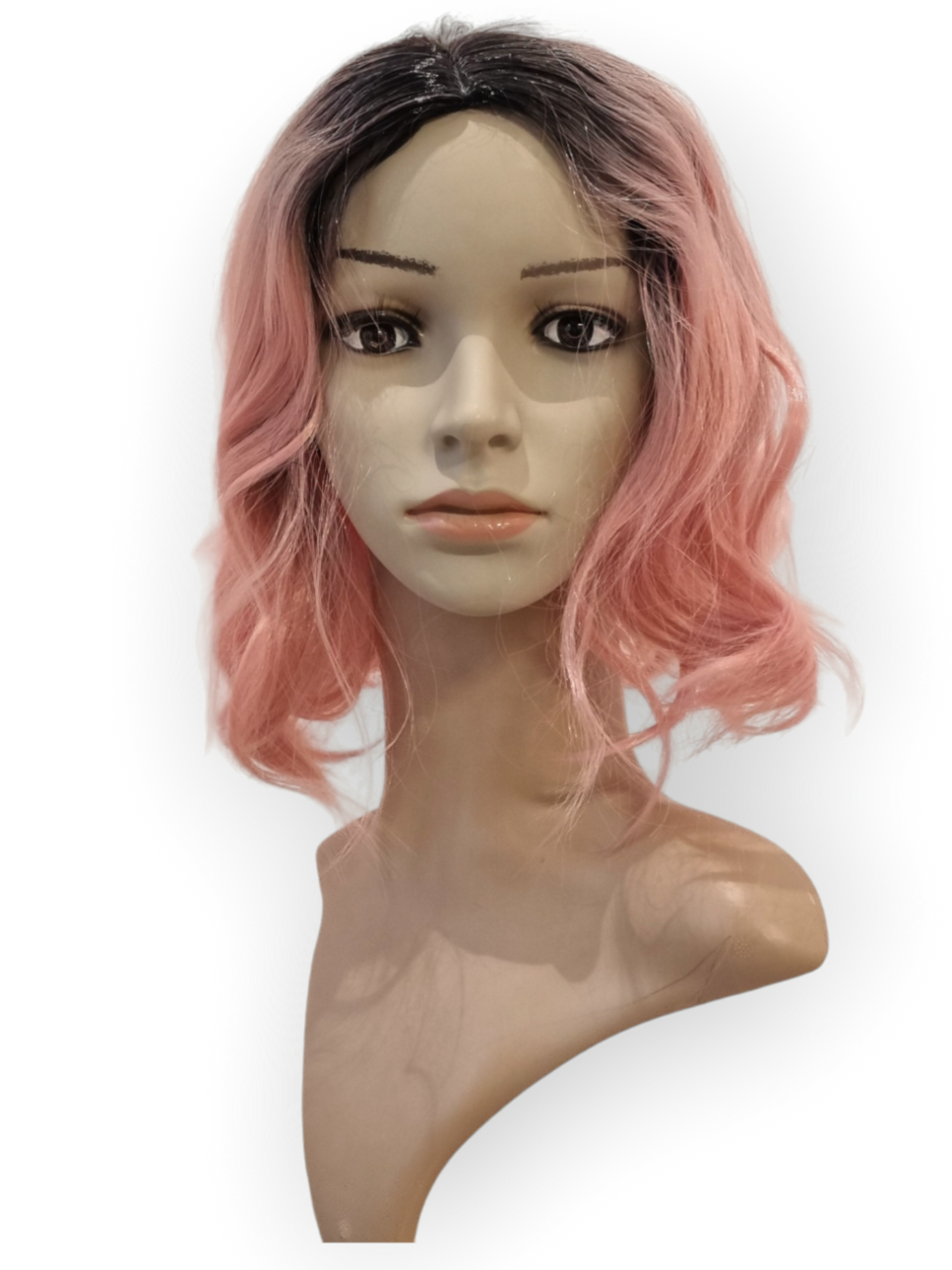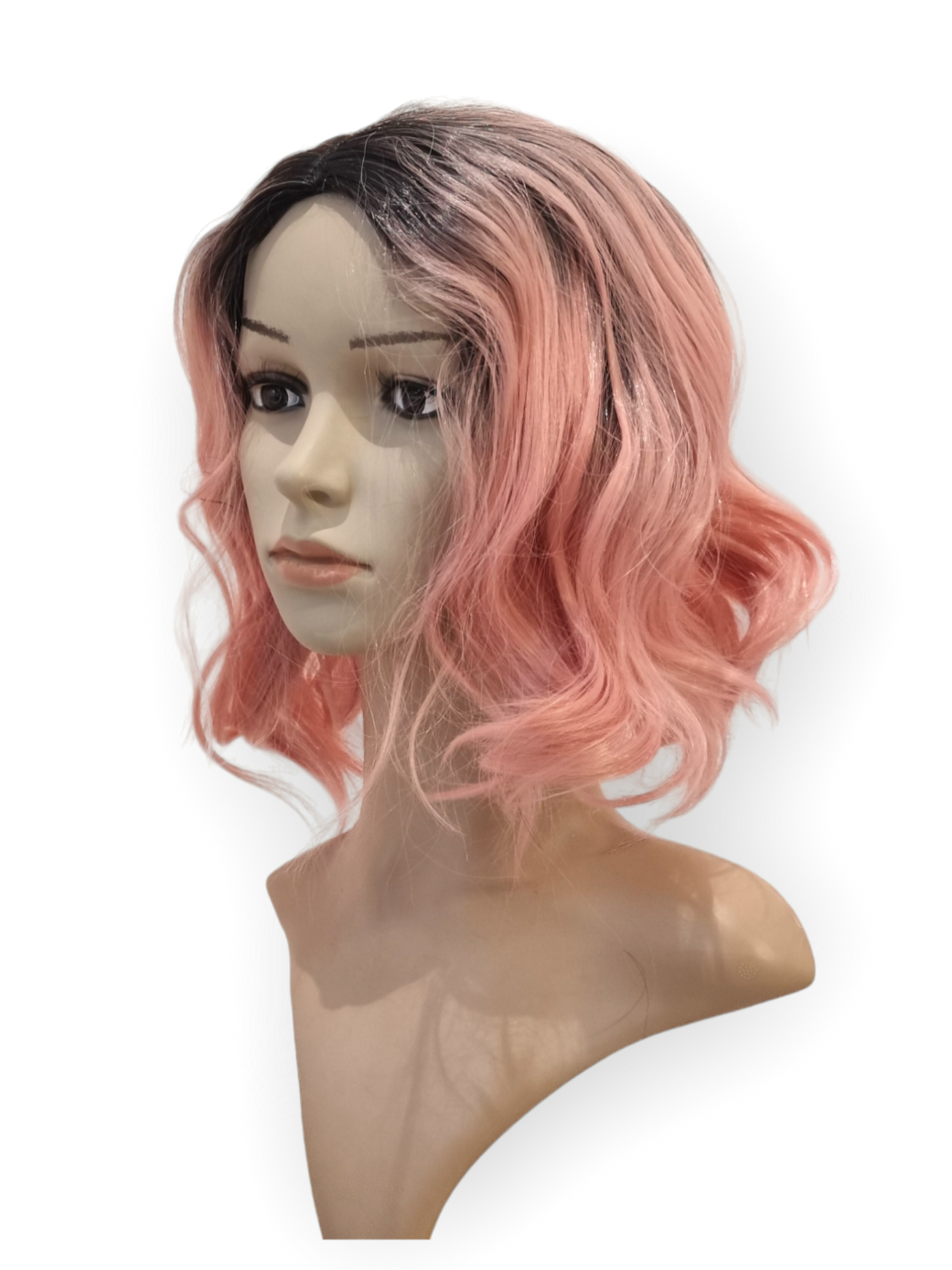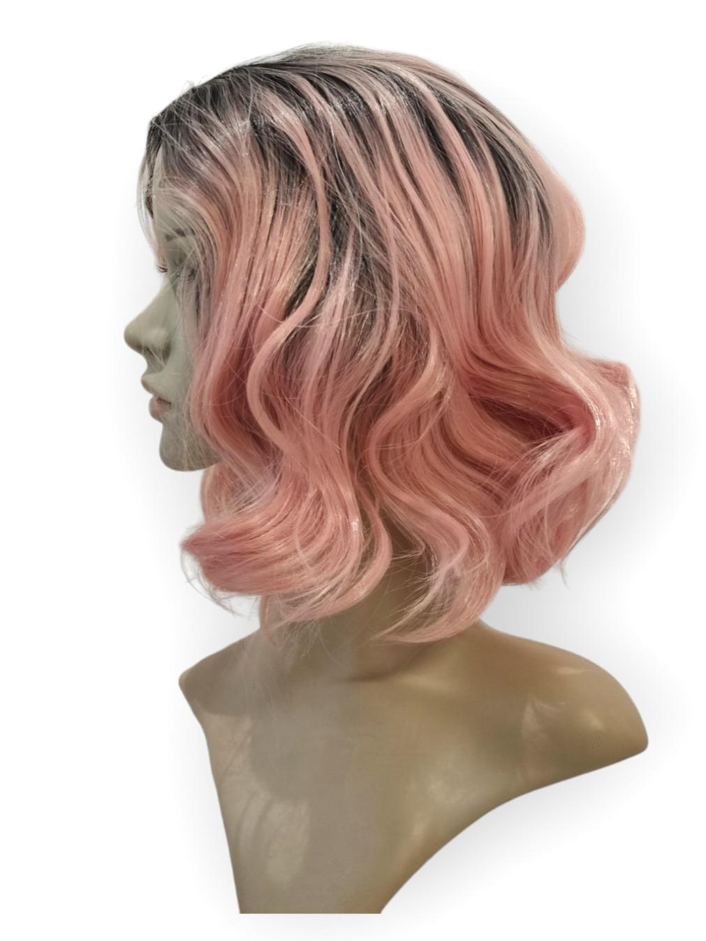Fever Collectionin laadukas ja ihana pehmeän vaaleanpunainen peruukki tummanharmaalla tyvellä.