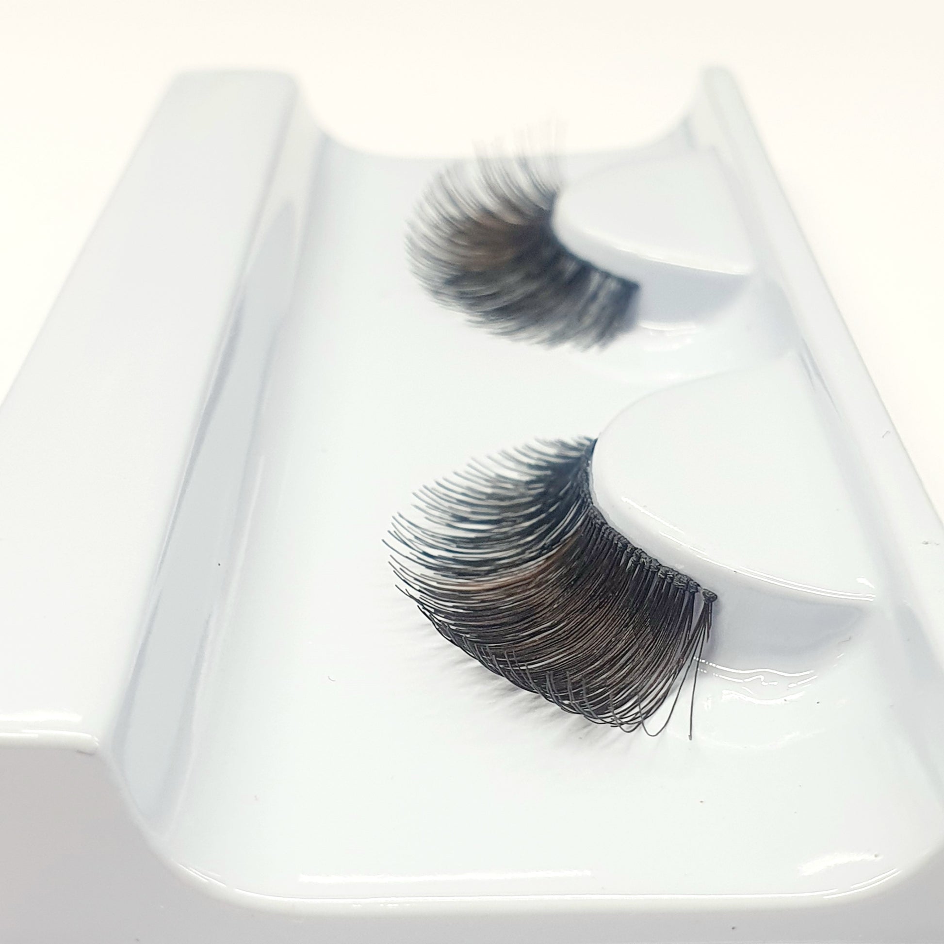 2. Mallaa ripsien koko silmääsi sopivaksi ennen liiman levittämistä. Jos ripset tuntuvat liian leveiltä, voit lyhentää ripsiä sisänurkasta leikaten.