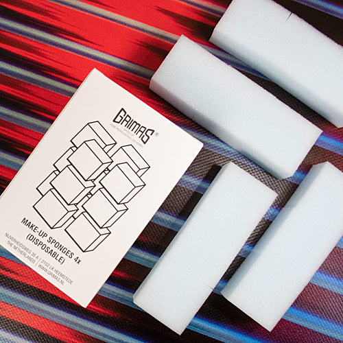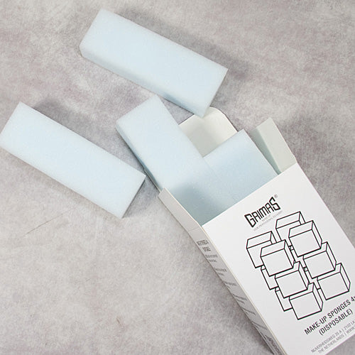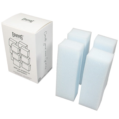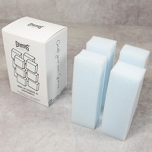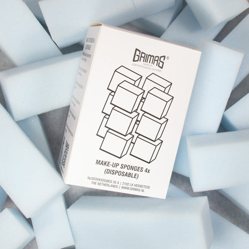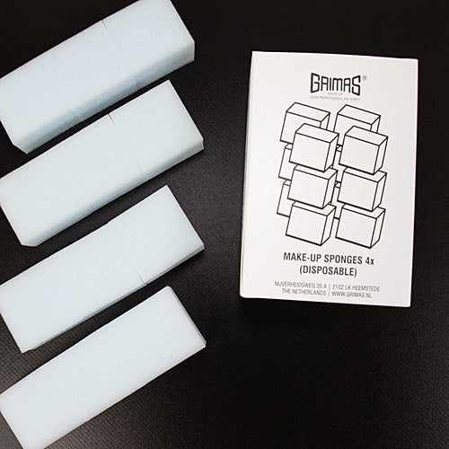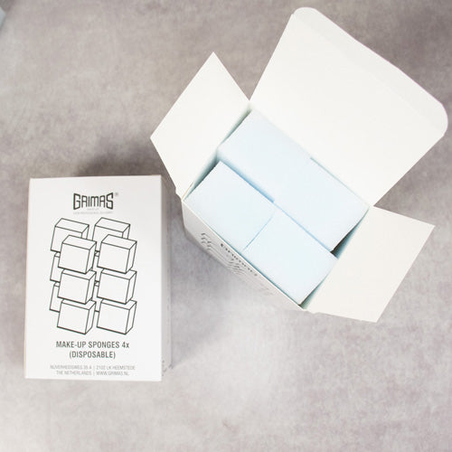 Edullinen meikkisienisarja vesipohjaisten kasvomaalien, kuten Grimas Water Make-up ja Grimas Liquid Make-up sekä Grimas Cake Make-up -meikkipuuterin levittämiseen kasvoille ja vartalolle. Materiaali vaahtomuovia, väri vaaleansininen. Pakkaus sisältää 12kpl pieniä kuution mallisia sieniä.