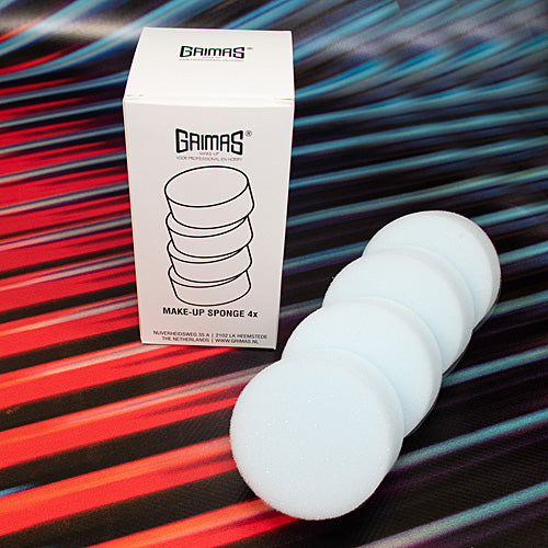 Edullinen meikkisienisarja vesipohjaisten kasvomaalien, kuten Grimas Water Make-up ja Grimas Liquid Make-up sekä Grimas Cake Make-up -meikkipuuterin levittämiseen kasvoille ja vartalolle. Materiaali vaahtomuovia, väri vaaleansininen. Pakkaus sisältää 4kpl suuria, ympyrän mallisia vaahtomuovisieniä.