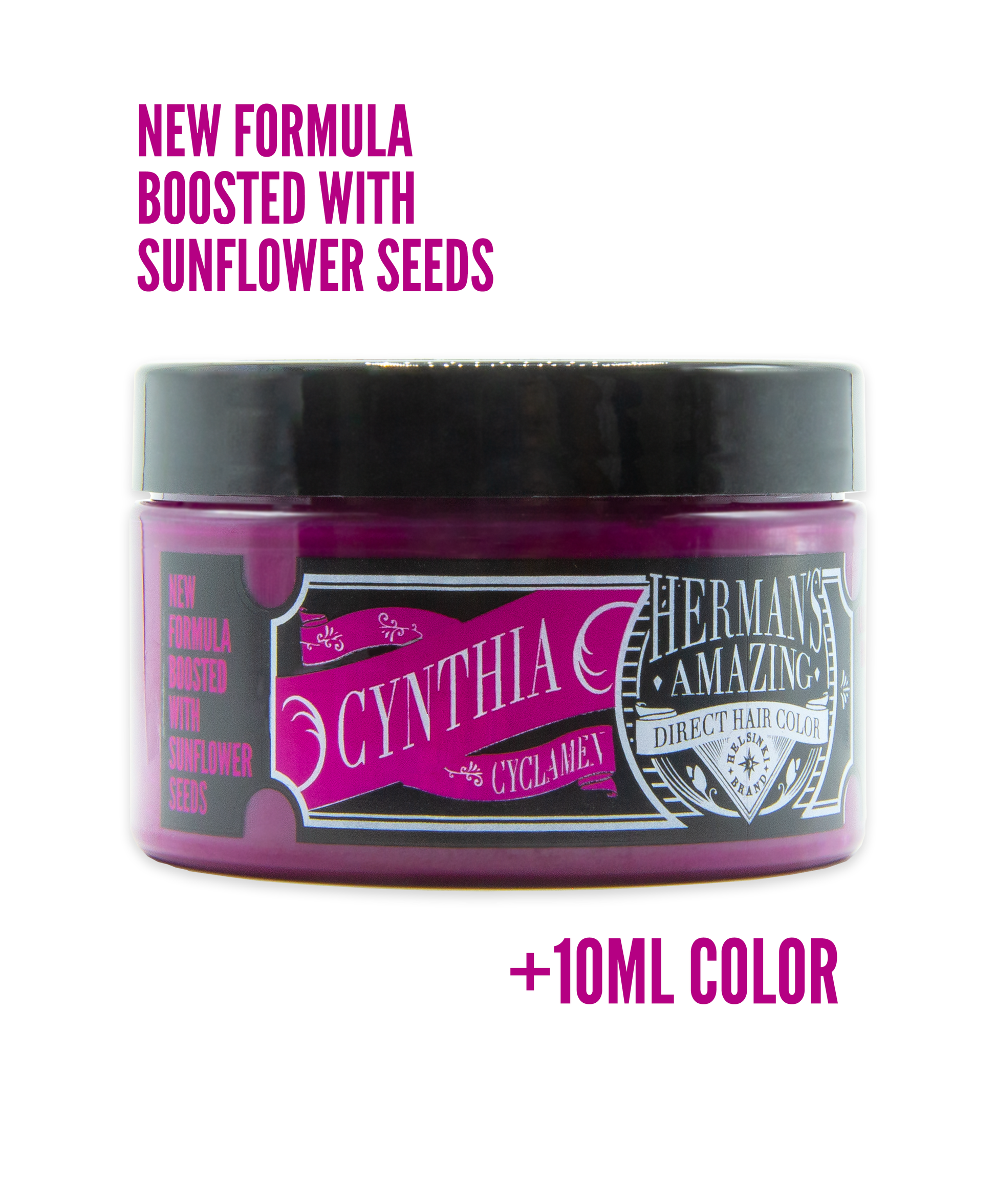 Herman’s Professionalin kirkas ja upea syvän magentan sävyinen shokkihiusväri.