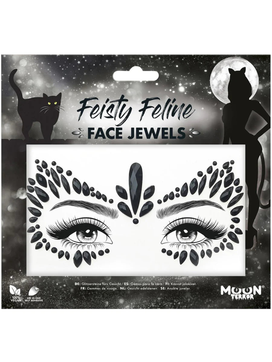 Superhelppo tapa tehdä näyttävät kimalteet kasvoille! Pelkästään mustanvärisistä strasseista muodostuva kasvotimanttisetti kiinnitetään kasvoille valmiina kuviona yhtenäisen liimapinnan avulla.