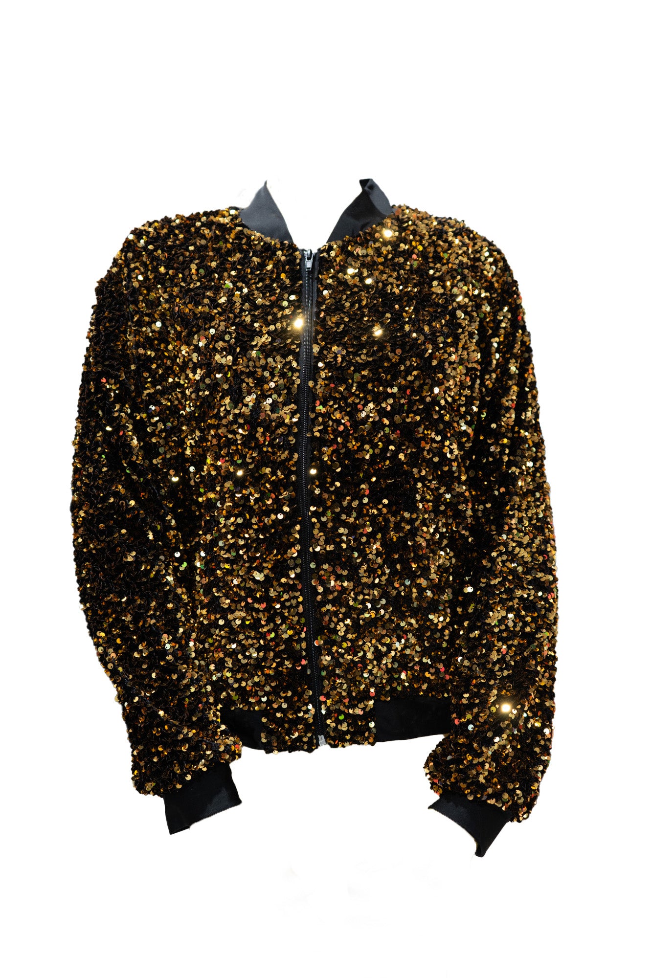 Lyhyt samettibomber paljeteilla, musta & kulta