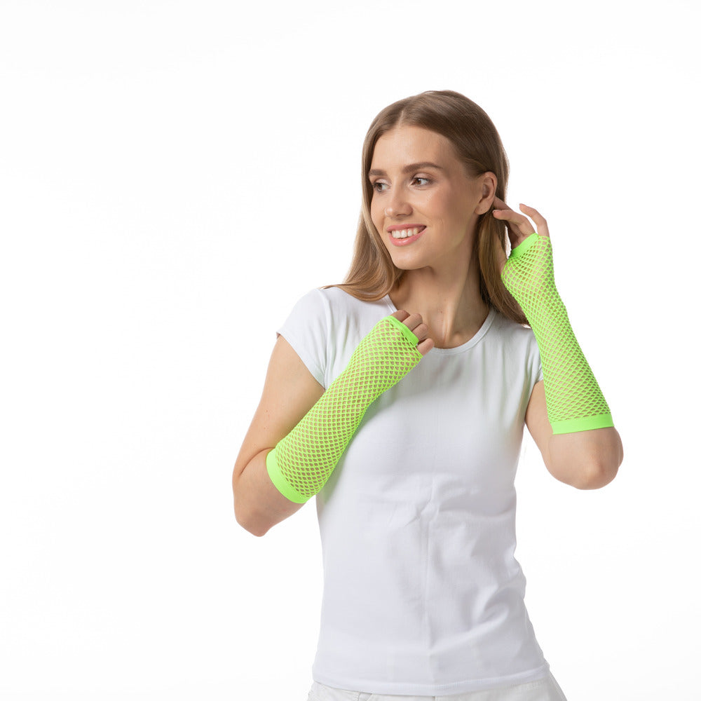 Pitkävartiset verkkokäsineet, neonvihreä (UV)