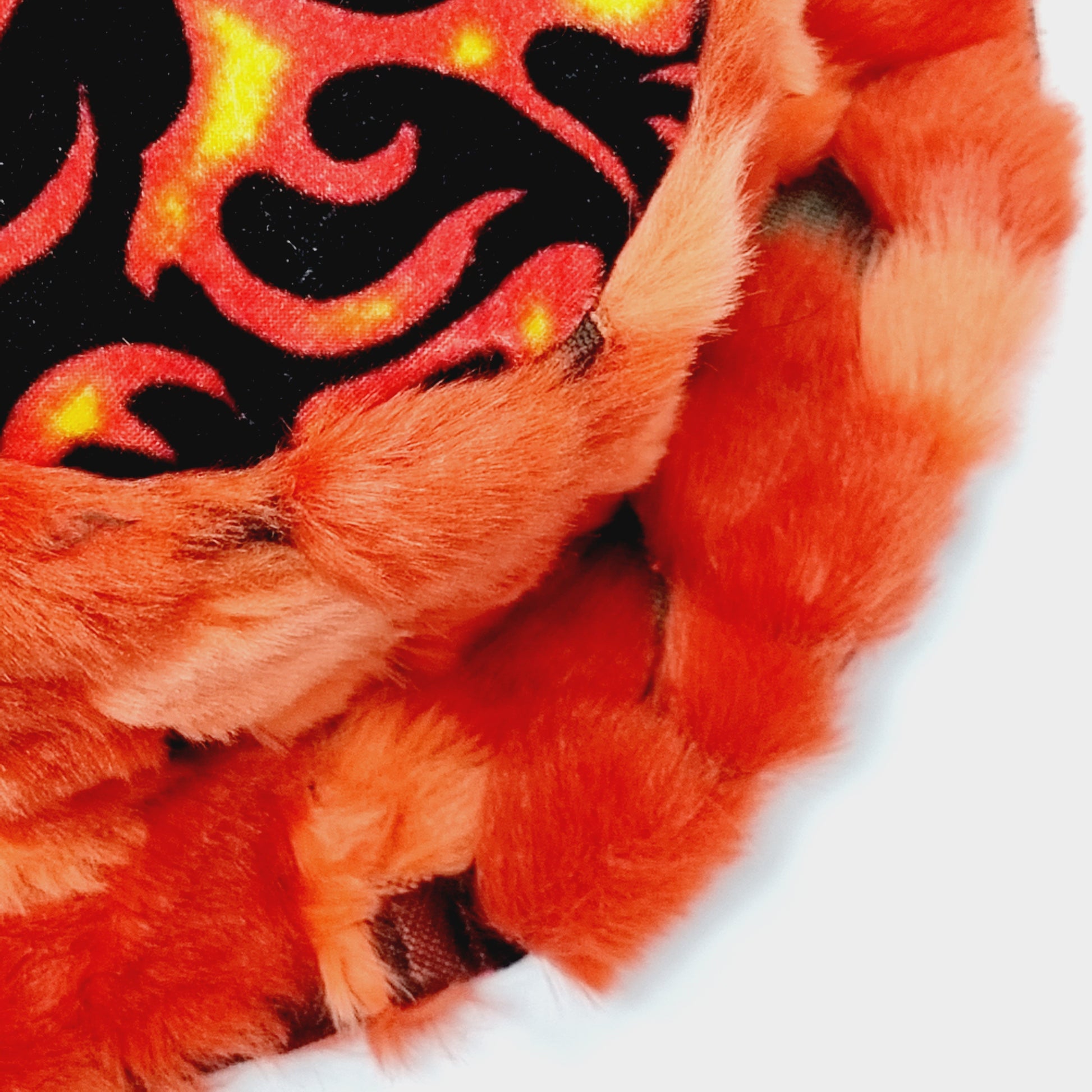 Jokaisen reivaajan, ysärifanin, nollarifiilistelijän, tyylikkään trendsetterin tai reivimenneisyyttään kaihoavan entisen nuorisolaisen vakiovaruste: kiksukarvahattu eli lierihattu, joka on tehty värikkäästä turkiksesta ja liekkikuosista. Väreinä punainen, oranssi ja musta. Pue festareille tai lumituiskuun, väliäkös tuolla, tämä toimii aina.
