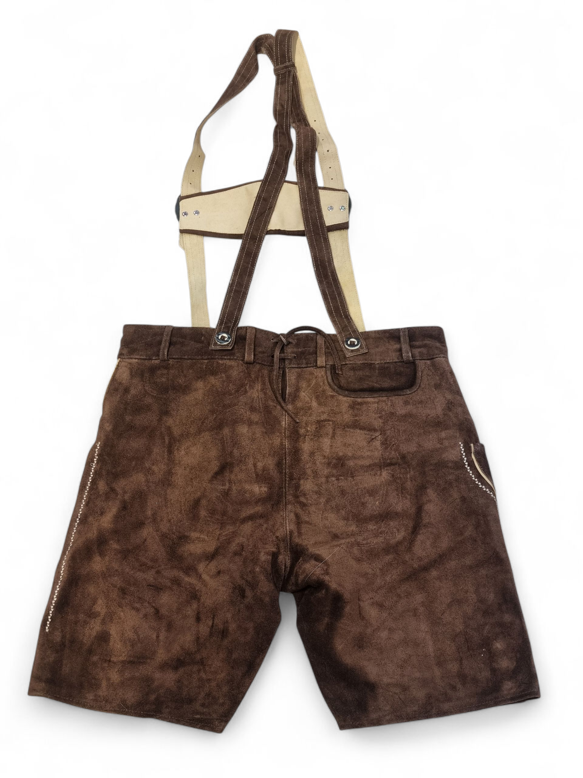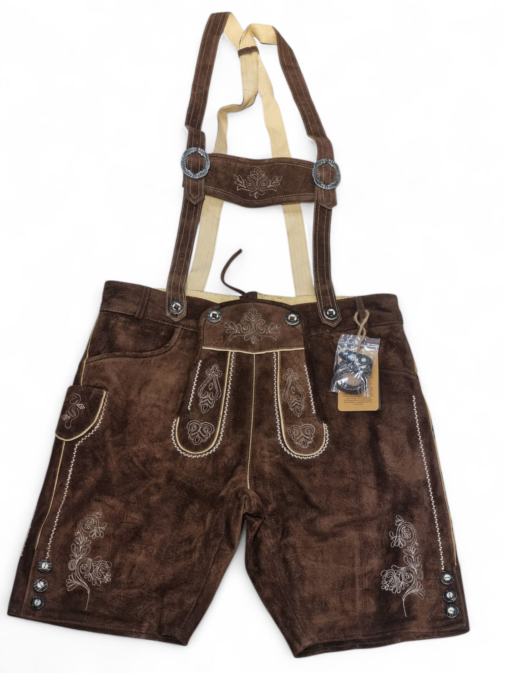 Aidot laadukkaat baijerilaismalliset shortsipituiset nahkahousut, joiden jokainen yksityiskohta on tarkkaan mietittyä laatutyötä. Nämä housut valmistetaan alusta loppuun saakka saman tehtaan sisällä, mikä mahdollistaa tuotentoprosessin korkealaatuisuuden. Valmis vaate on aina käyttötuote, joka kestää oikealla hoidolla vuodesta toiseen.