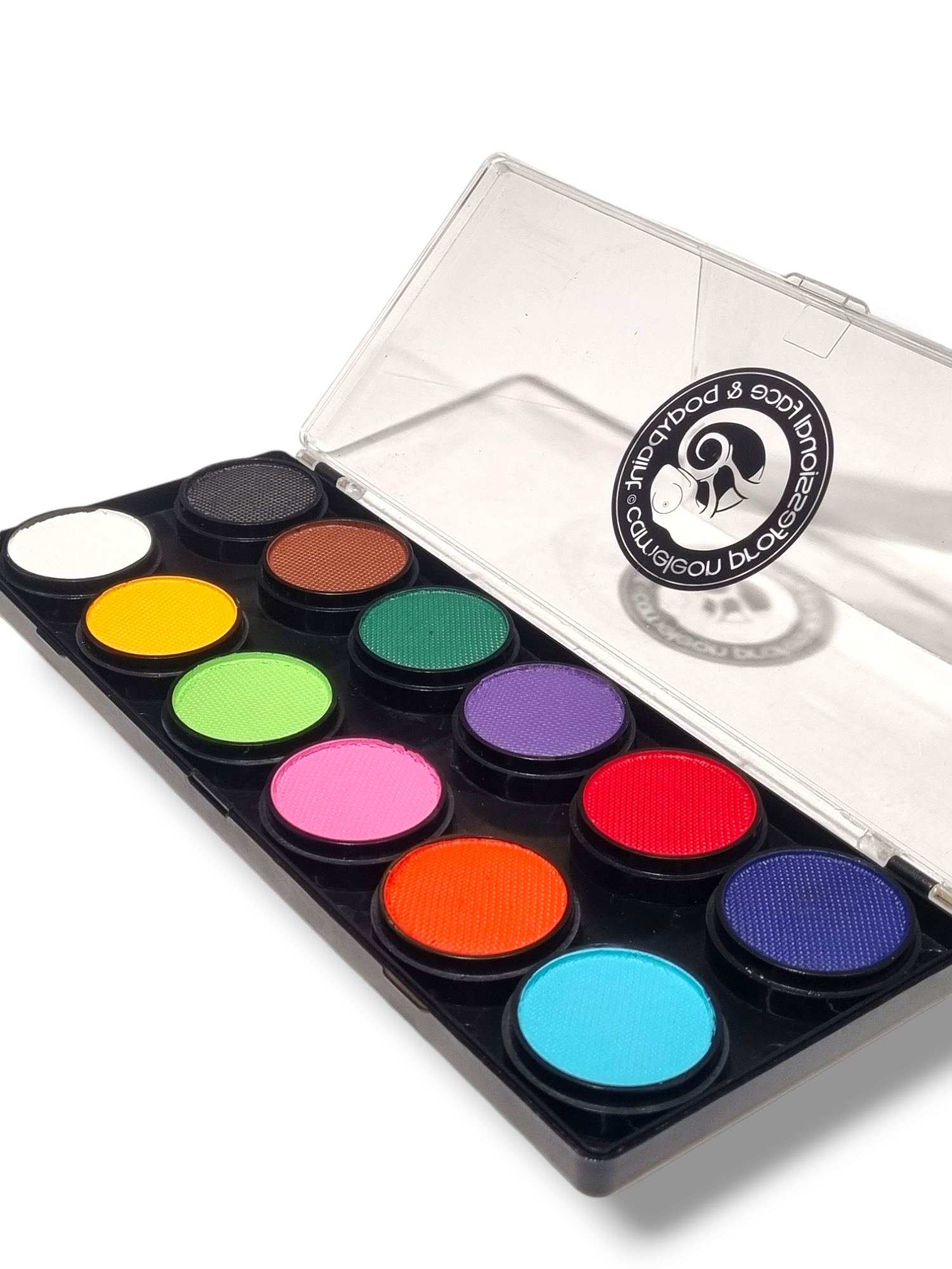 Cameleon Professional Face & Bodypaint kasvomaalisetti, jossa 12 vesiliukoista värinappia.