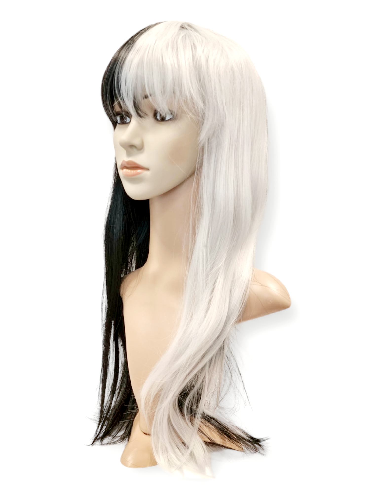 Fever Collectionin ja Manic Panic -suoravärisarjan yhteistyössä luoman peruukkimalliston mustavalkoinen peruukki esimerkiksi Cruella de Vil -asuun, arkikäyttöön tai kuvauksiin. Täyspitkä ristiselkään saakka ulottuva malli. Revityn mallinen otsatukka. Peruukin pituus pisimmillään n. 70cm.