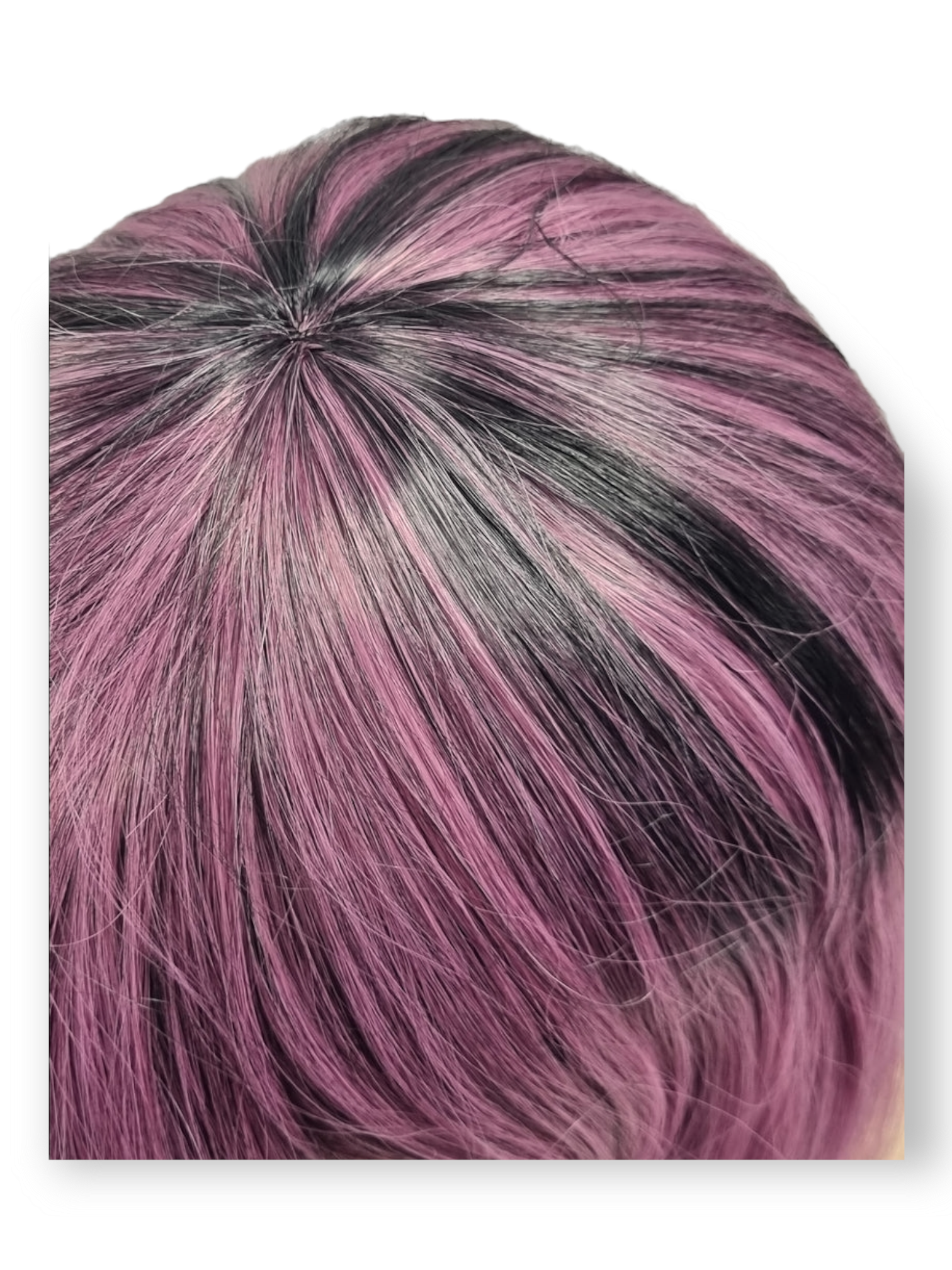 Fever Collectionin laadukas ja ihana peruukki viileän jossa kaunis värjäys: tumma, liki musta tyvi, joka liukuu hieman tuhkaiseen, marjapuuron väriin taittavaan violetin sävyyn.