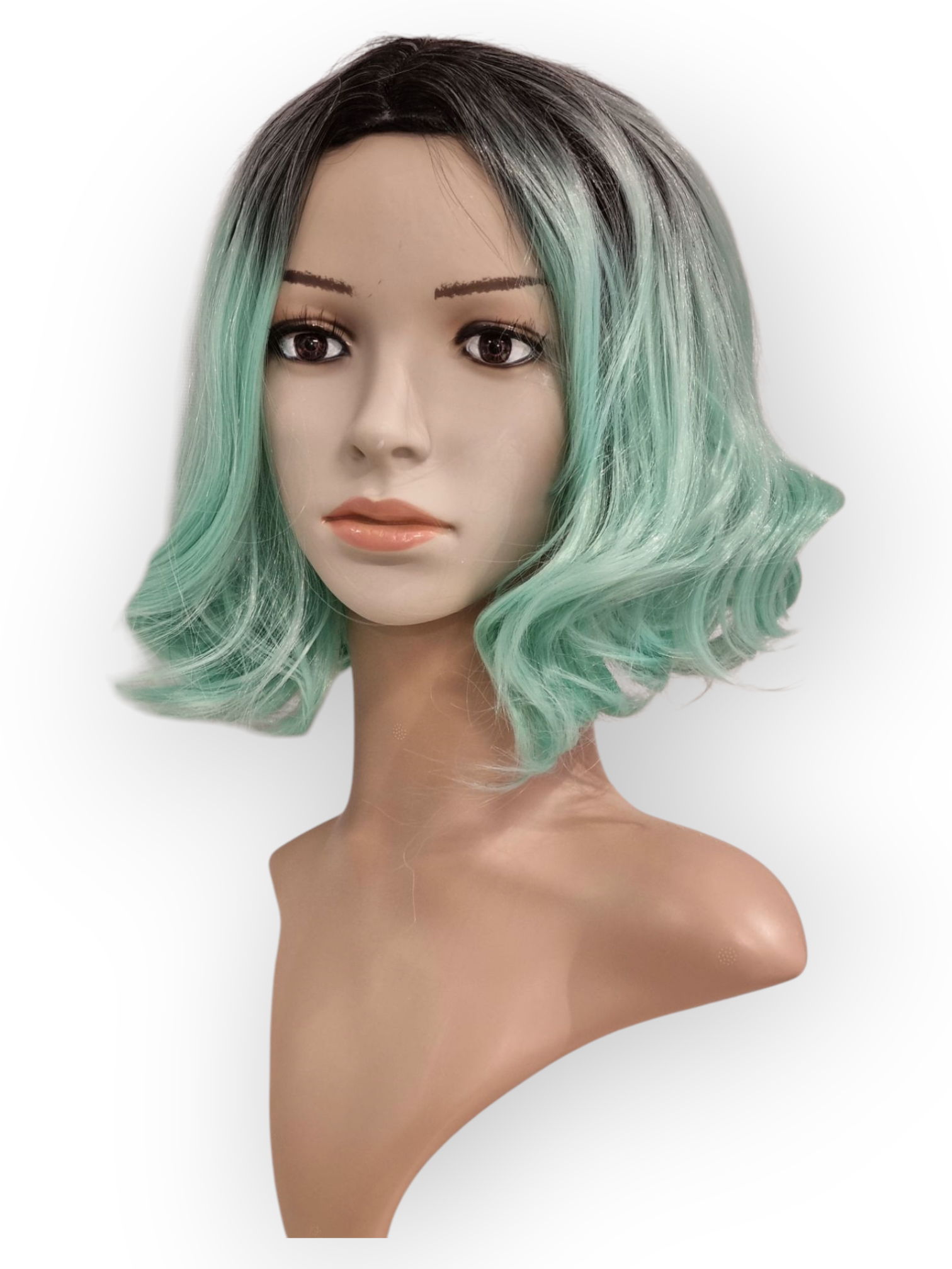 Fever Collectionin laadukas ja ihana mintunvihreä peruukki tummanharmaalla tyvellä.
