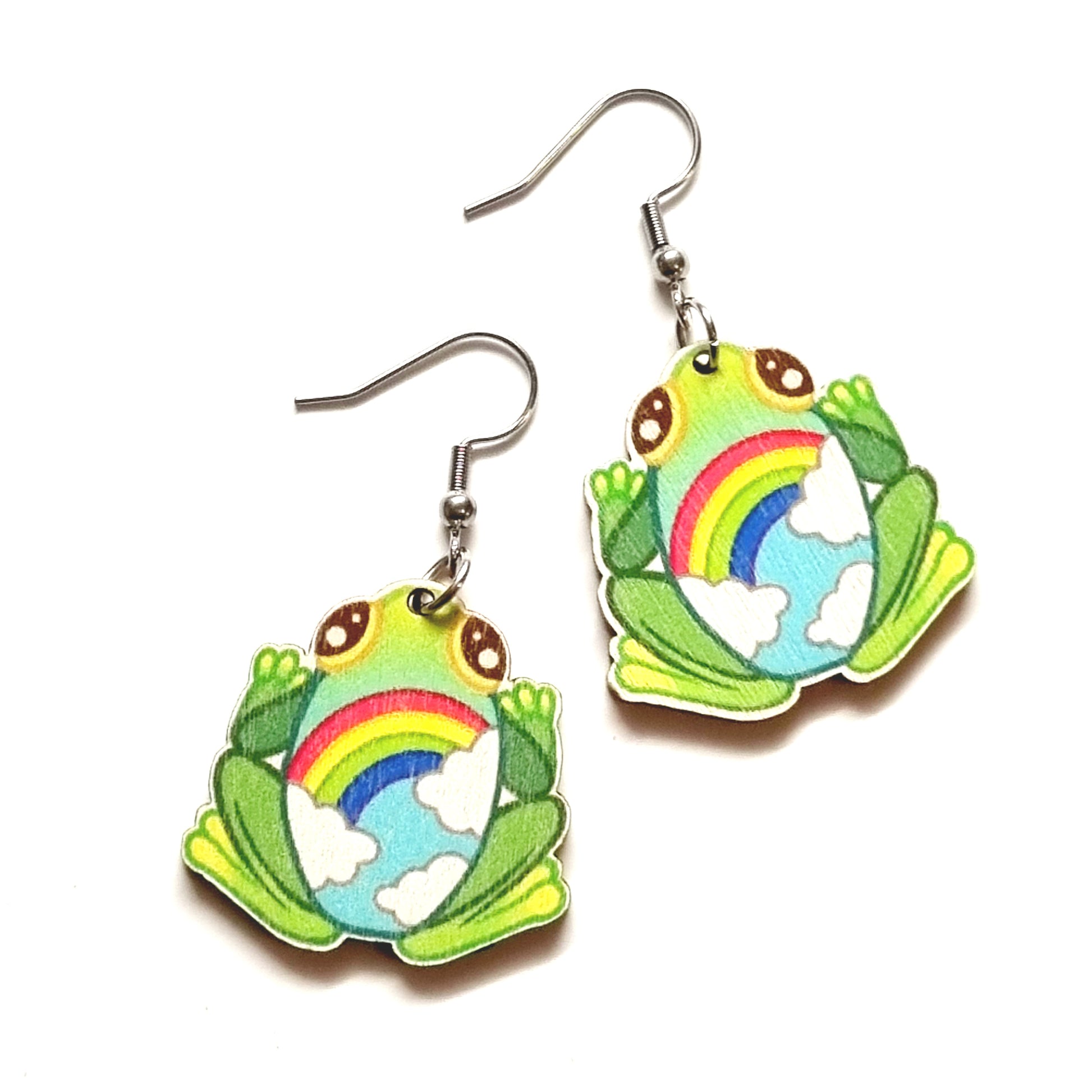 Maailmojasyleilevän söpöt kaverit korviisi! Sammakko jonka selässä on sateenkaari saa sinutkin hymyilemään mukanaan.