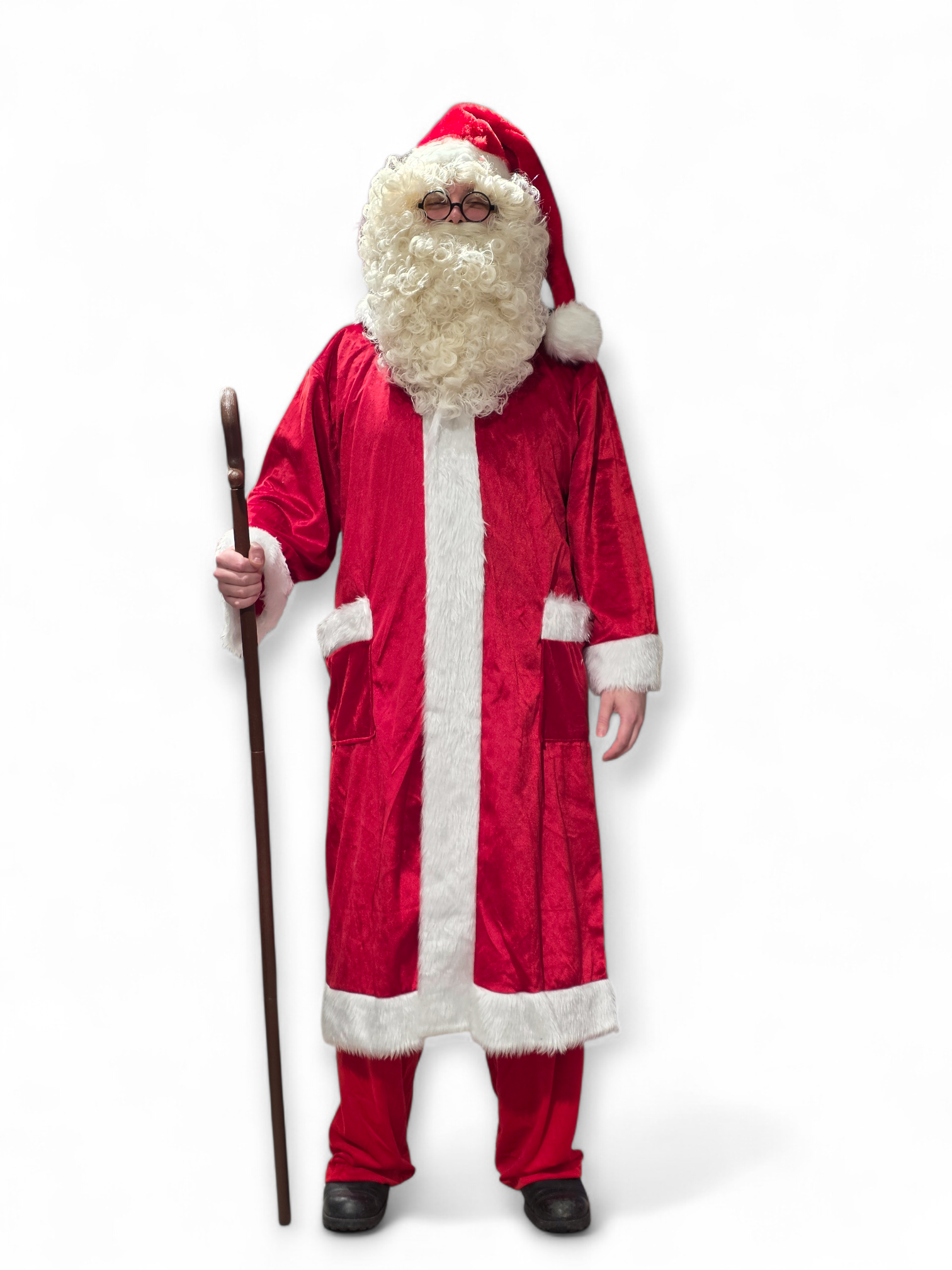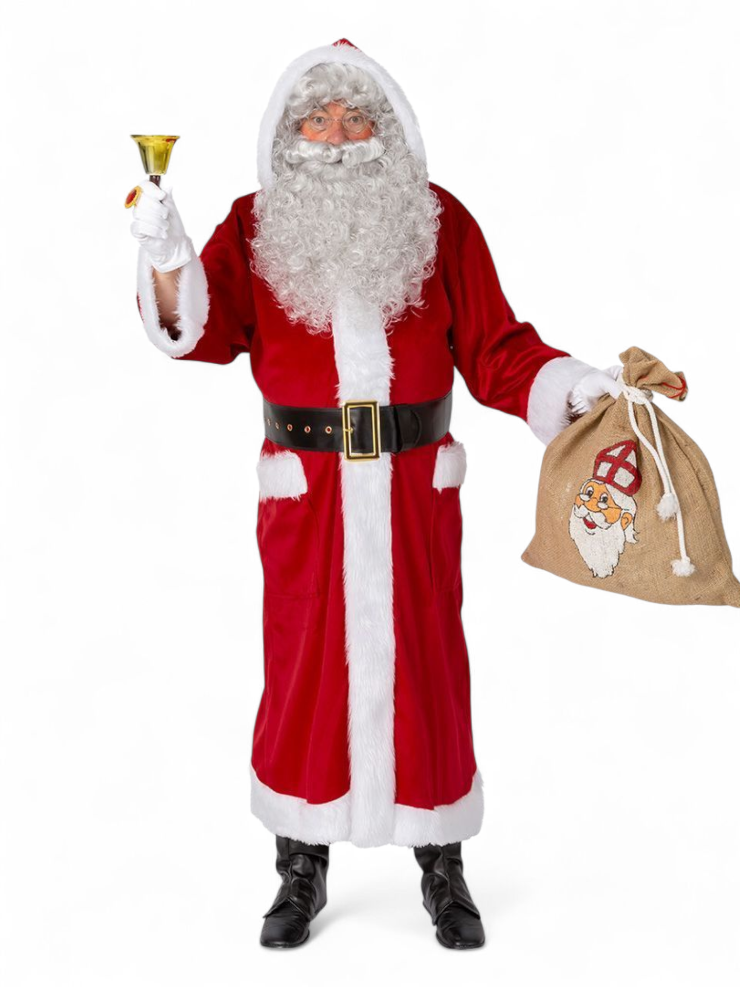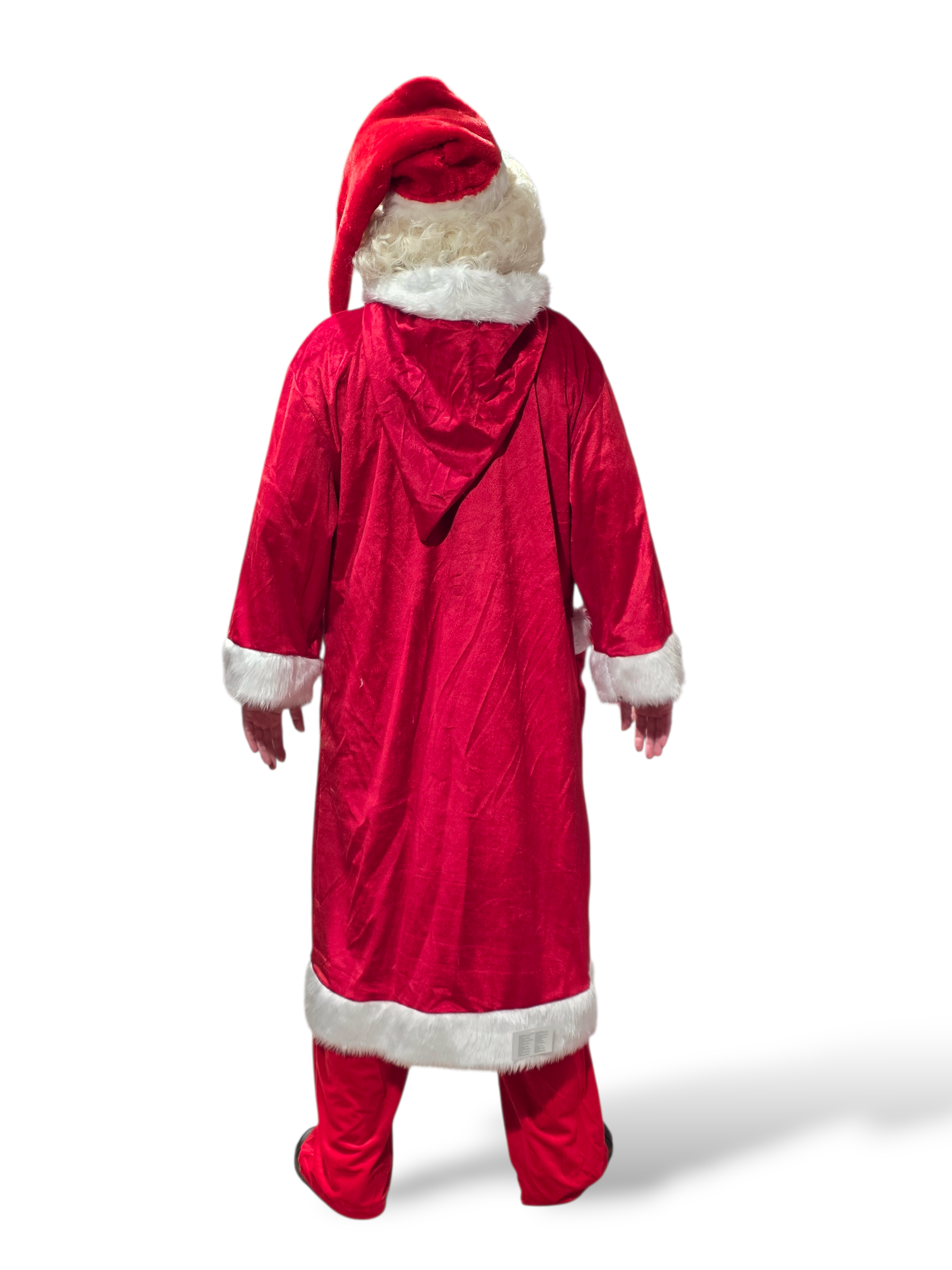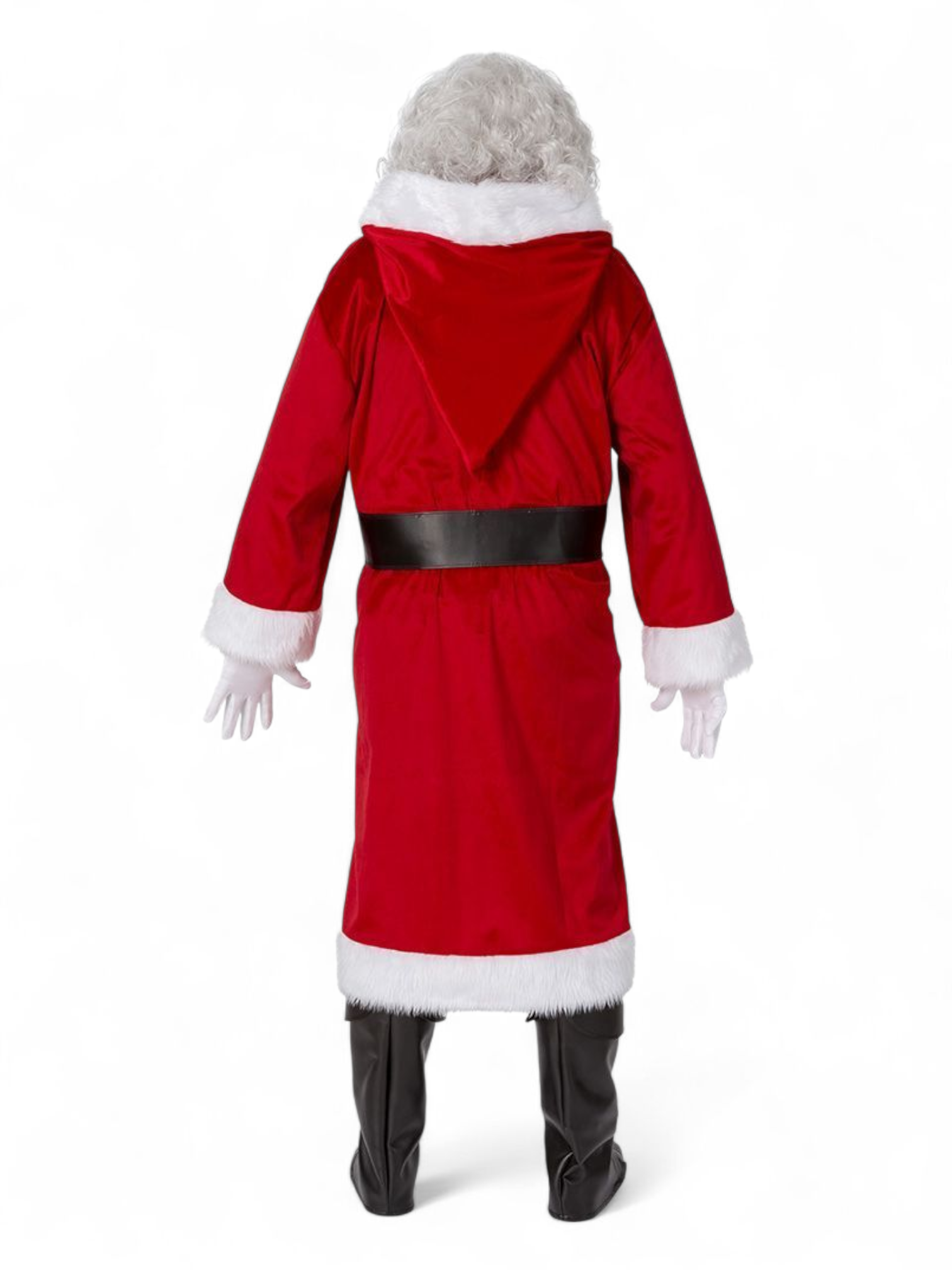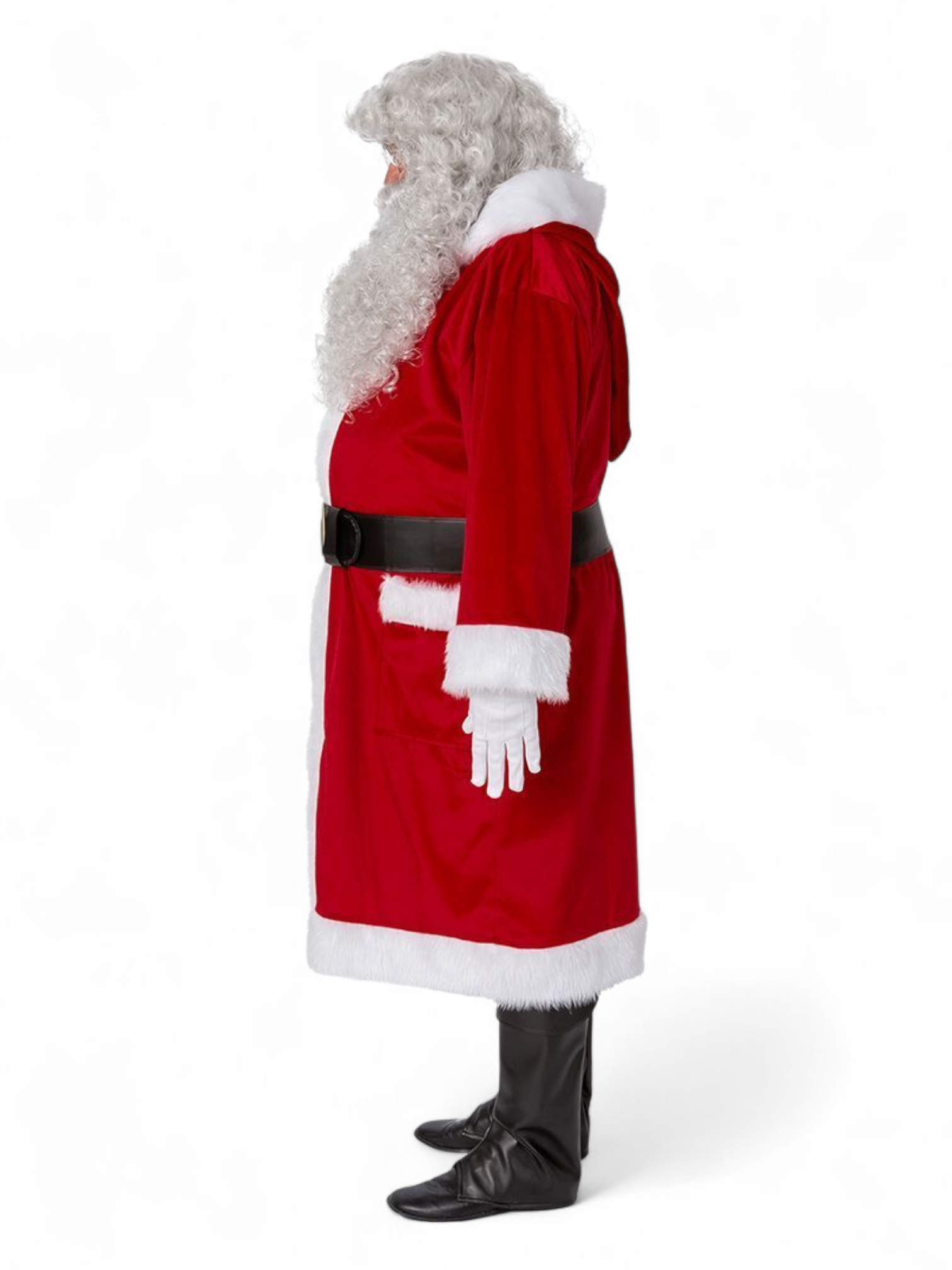Joulupukin mantteli hupulla, taskuilla ja vyöllä