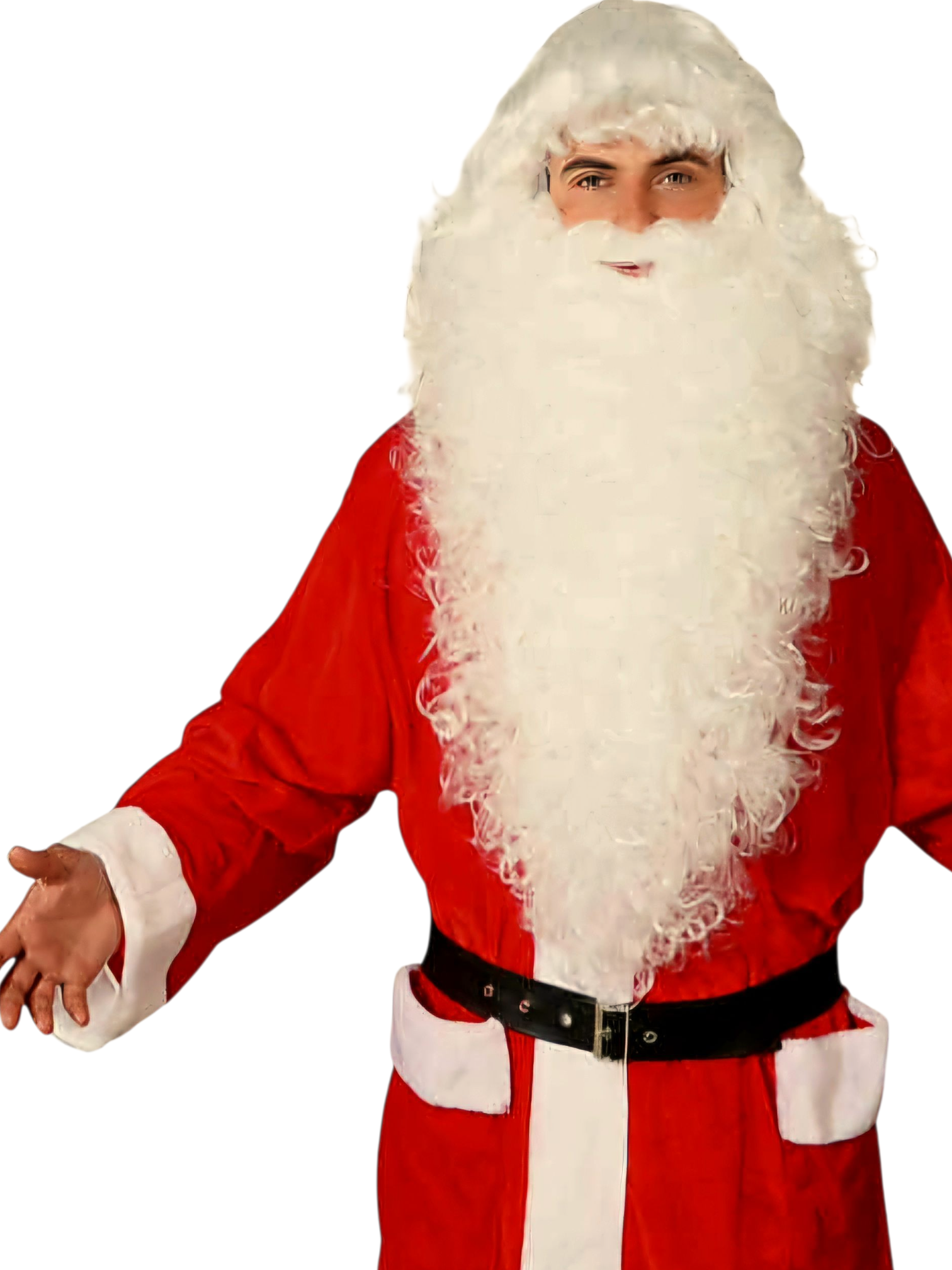 Joulupukin parta ja peruukki Extra Long, kihara luonnonvalkoinen