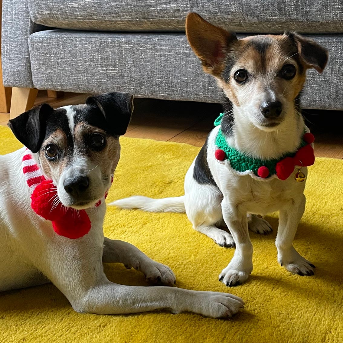 Punavalkoista karkkikeppiraitaa koiran ja muidenkin lemmikkien kaulaa koristamaan. Jouluhenkeä tuova söpöilyasuste on kokonaispituudeltaan n. 62cm, joten tämä on helpoin solmia pienehkön tai keskikokoisen koirakaverin kaulalle. Materiaali pehmeää neulosta, päissä punaiset pompulat.
