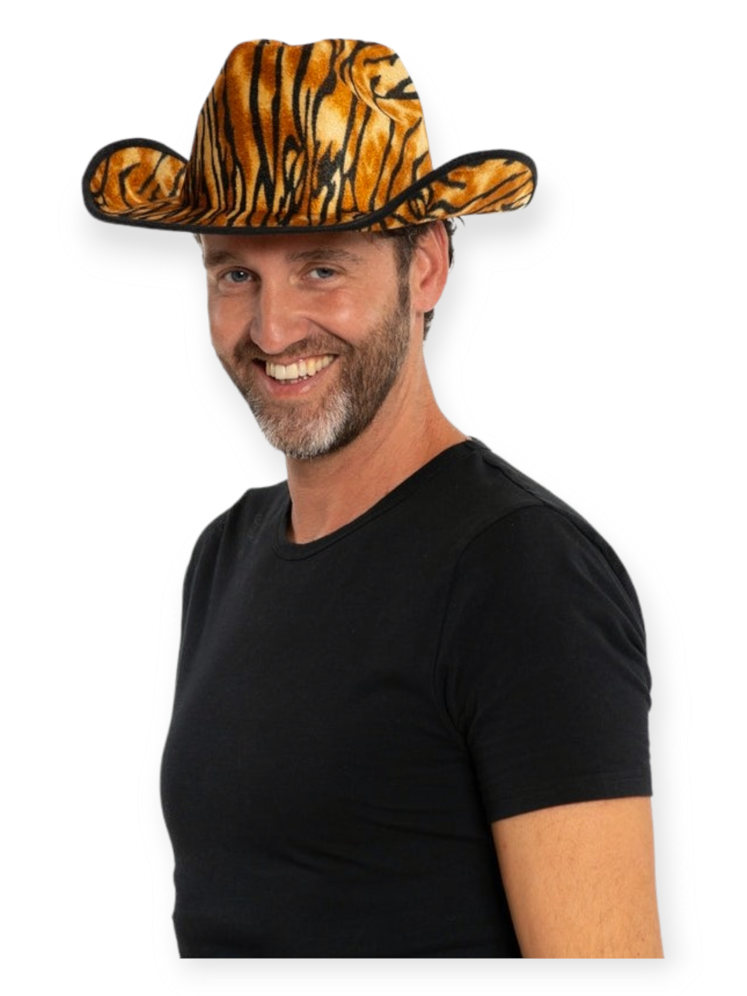 Vähän erilainen cowboyhattu eli stetson tiikerimäisesti raidoitettuna.