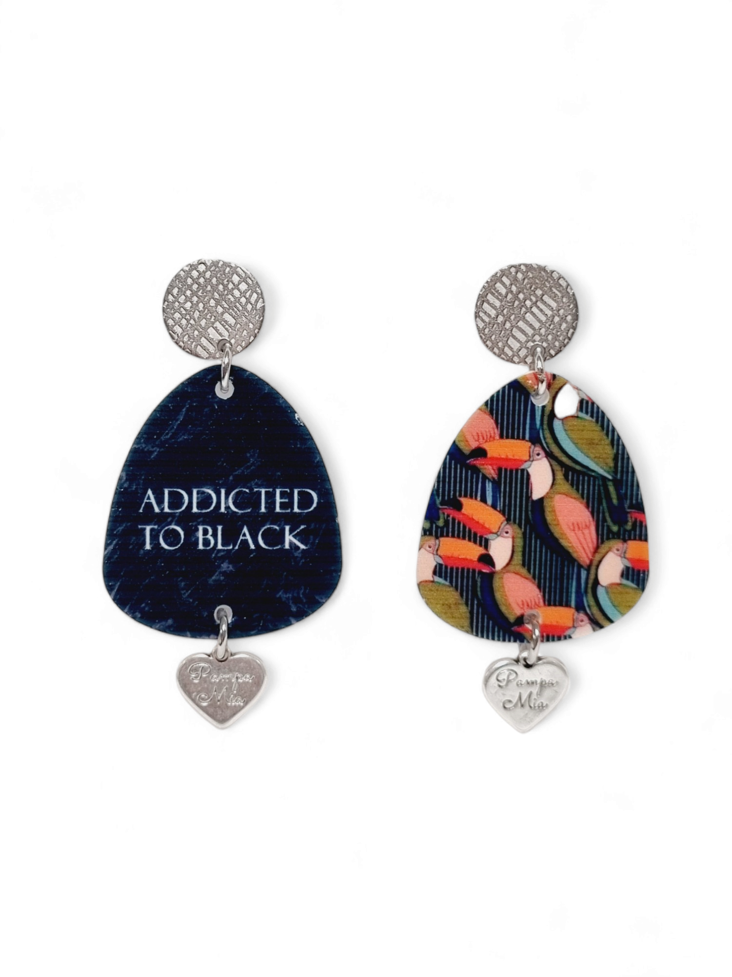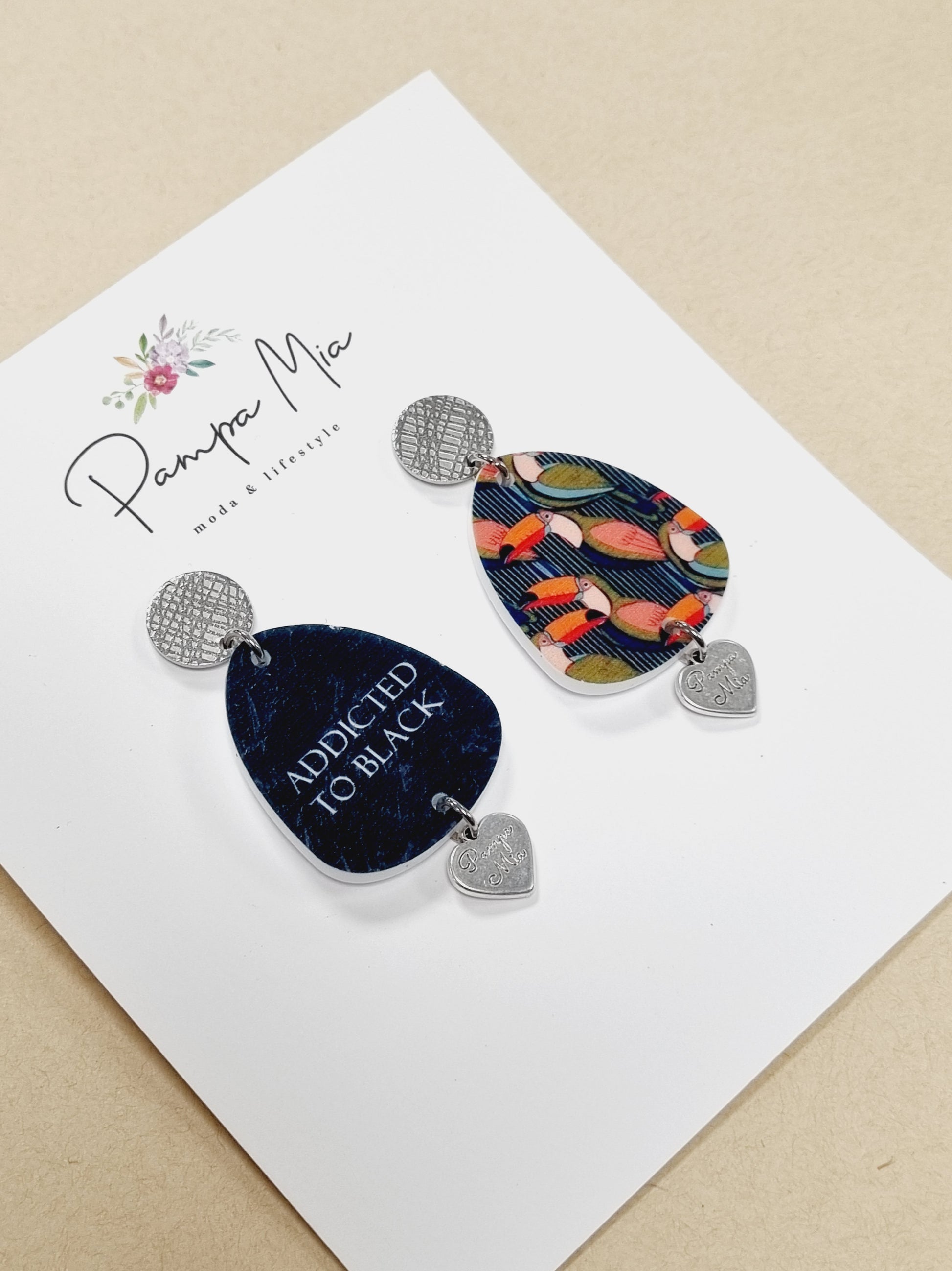 Katseita kääntävät Pampa Mia -korvakorut ovat asuste, jotka välittävät viestin niin korujen kantajalle kuin niiden katsojallekin. Käsityönä kasattavien korujen vakiovarusteena tulee runsas määrä (tässä tapauksessa mustaa!) väriä, roppakaupalla asennetta ja sydämen täydeltä tunnetta.