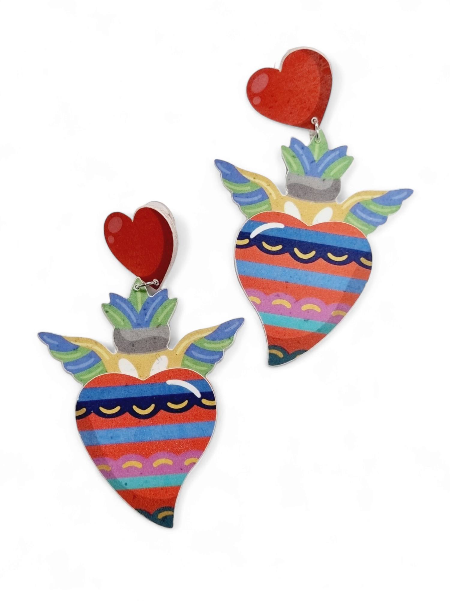 Supervärikkäät sydänkorvakorut, jotka tuovat kantajalleen väriä, iloa ja voimaa.