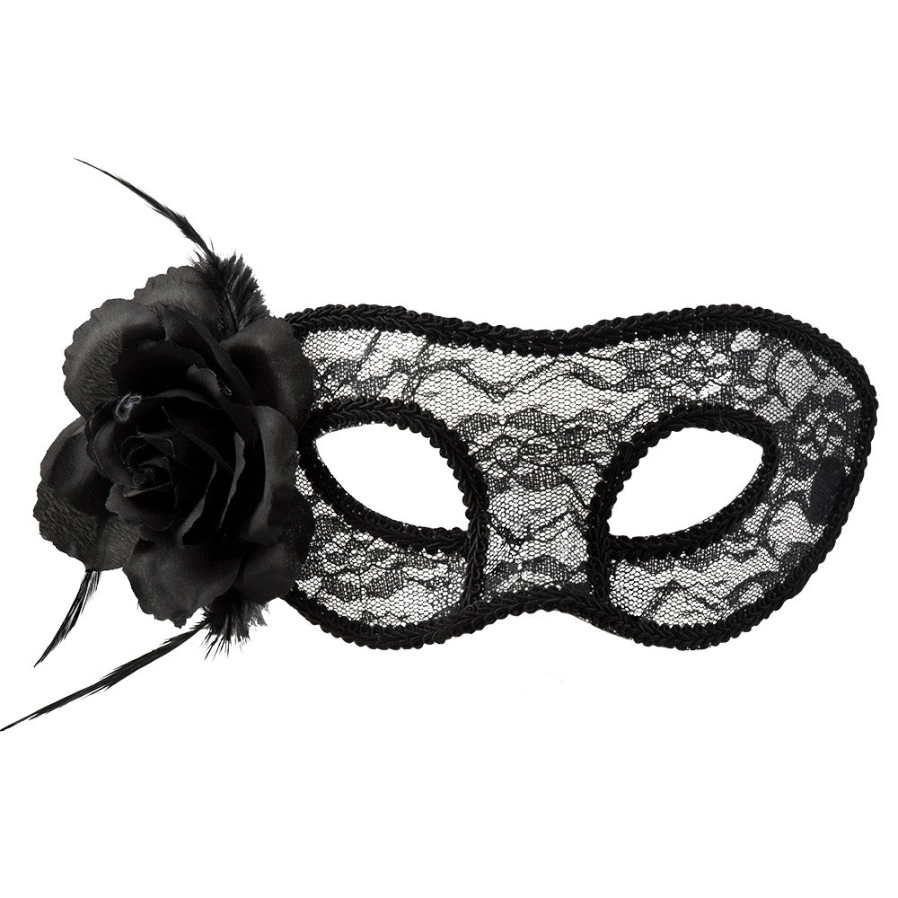 Pitsipintainen musta silmikko ruusukoristeella ja kuminauhalla.