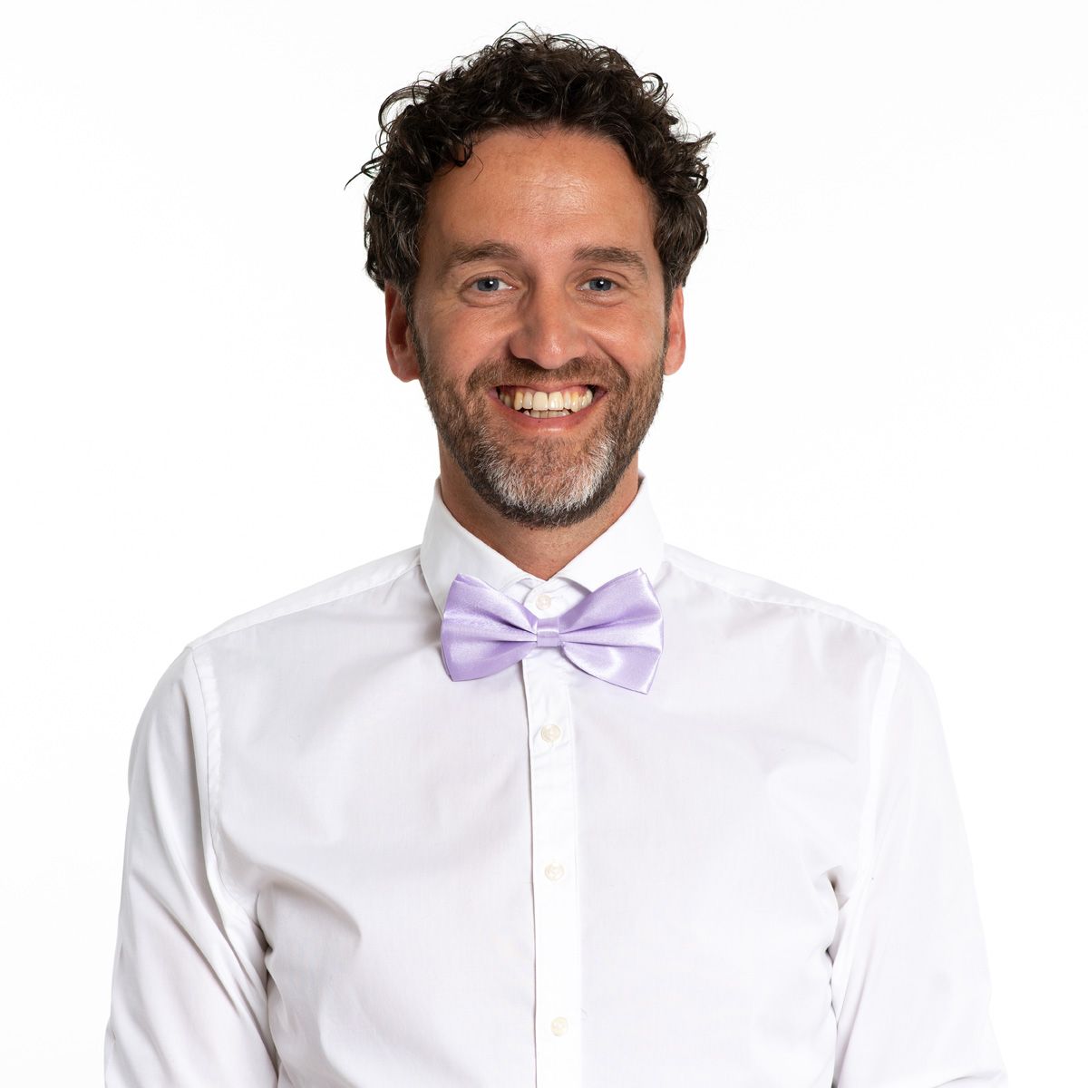 Hempeän vaalea violetti valmiiksi rusetiksi tehty solmuke, joka kiinnitetään kaulaan klassisella klipsikiinnityksellä. Rusetin nauhassa solki ympärysmitan säätämiseksi.
