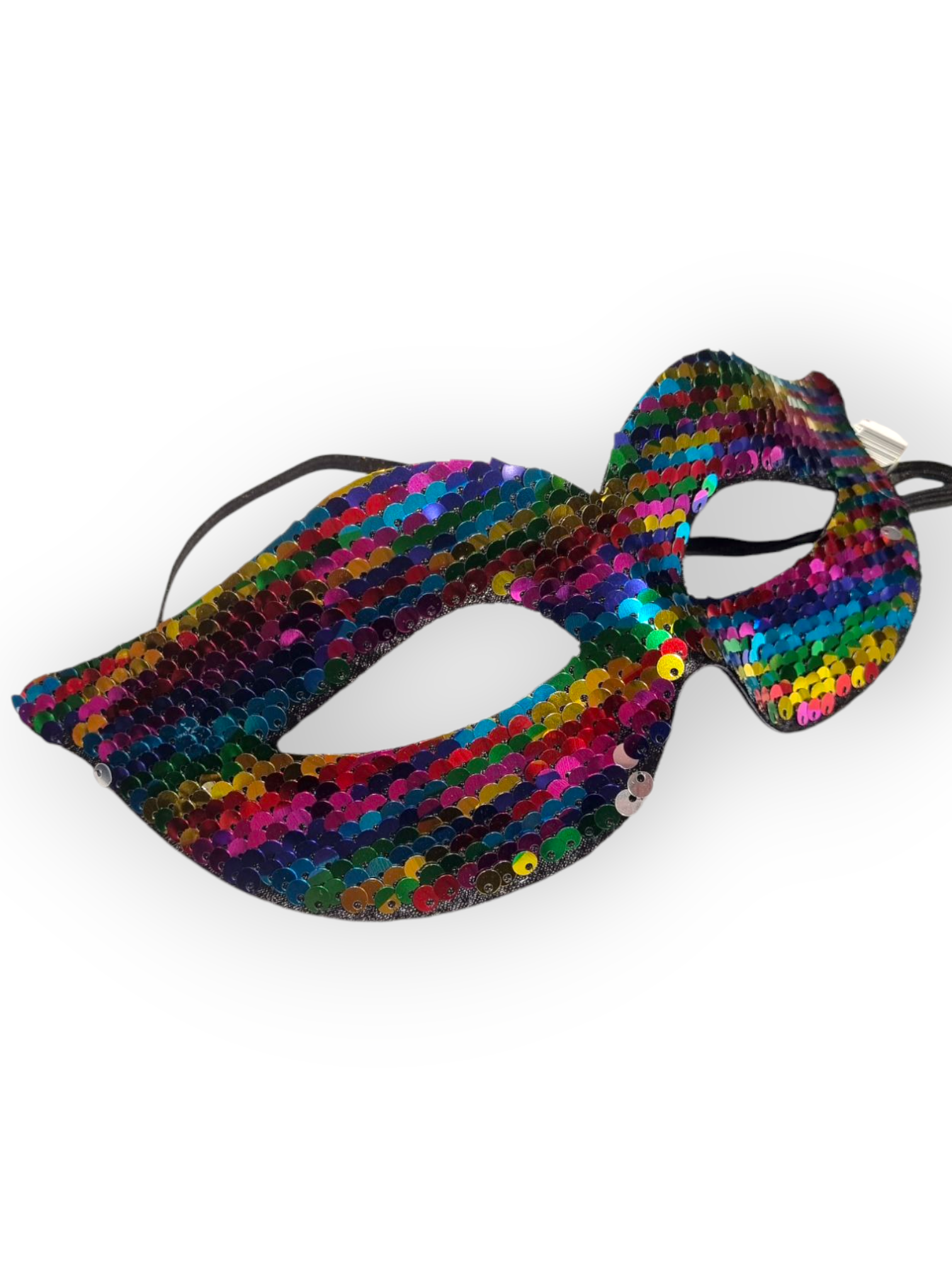 Pinnan peittävien kääntöpaljettien värinä erilaiset sateenkaarisävyt. Kuminauhakiinnitys.