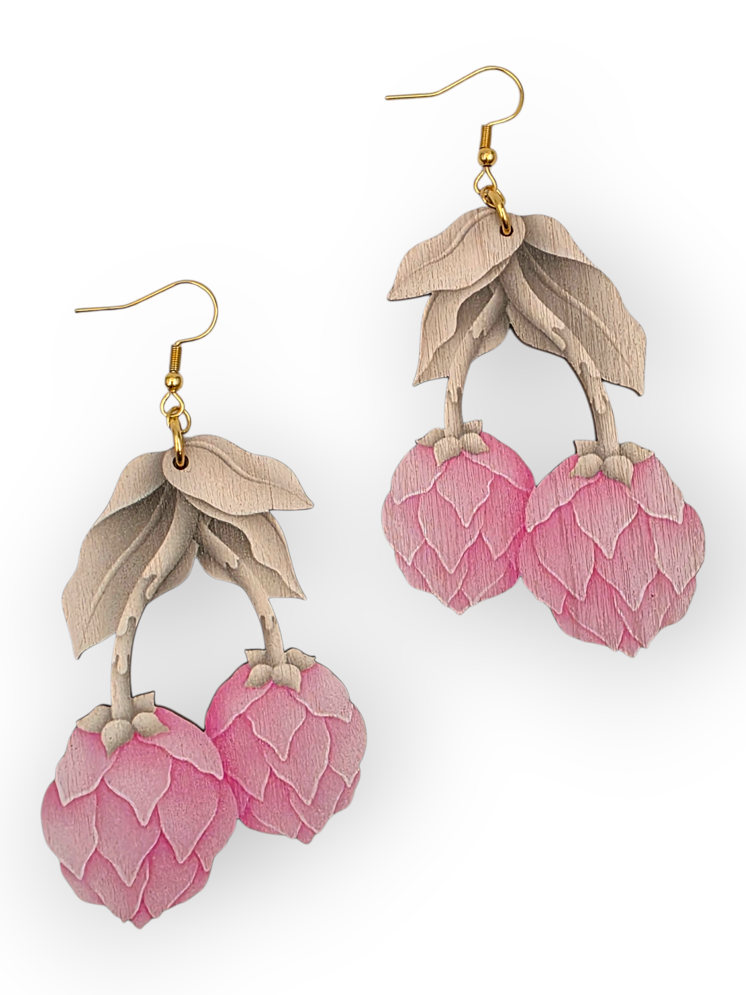 Korujen materiaali suomalaista koivuvaneria, metalliosat terästä. Mukana kumiset stopperit, jotka pitävät korvakorut paikallaan korvissasi.