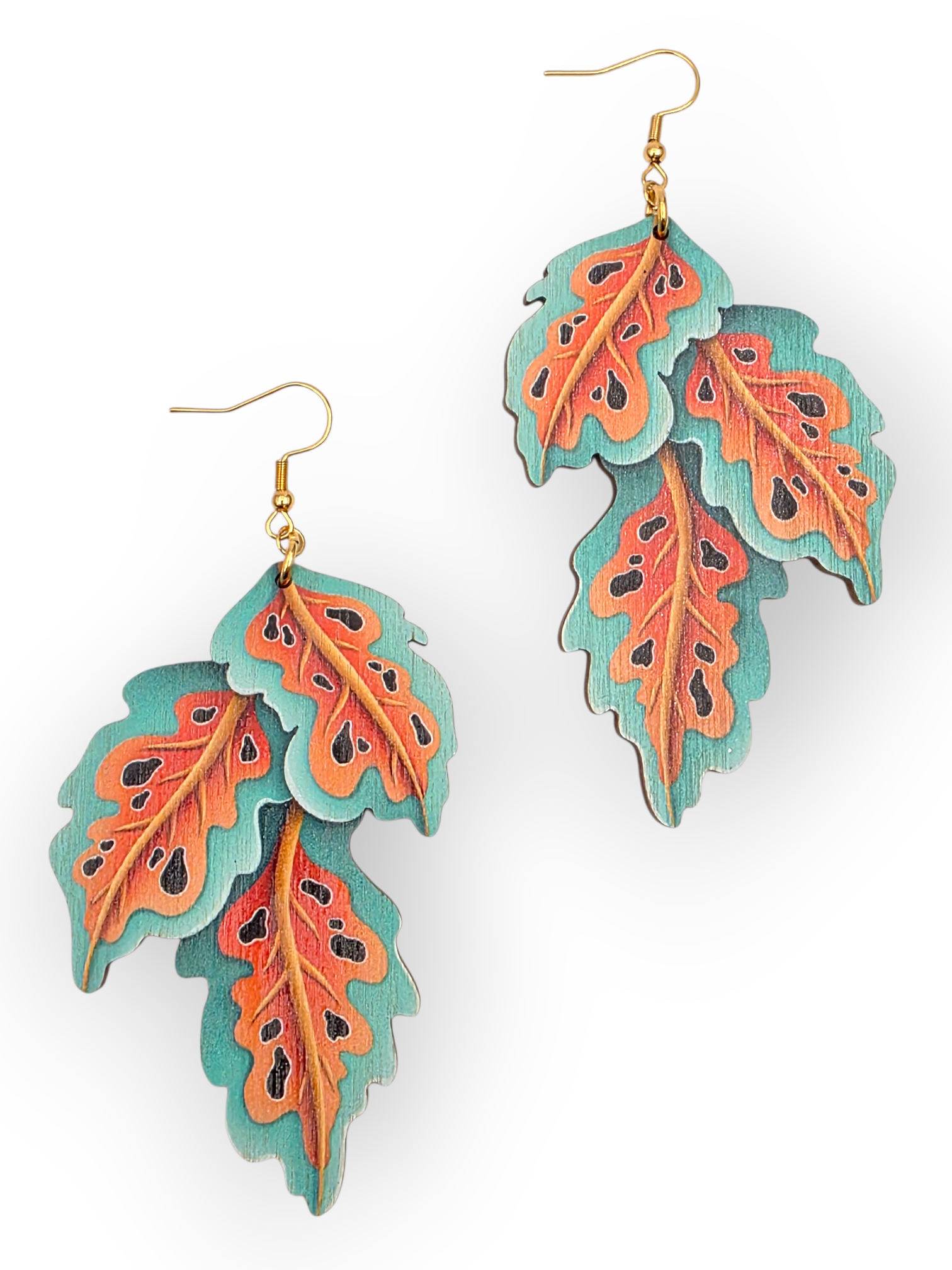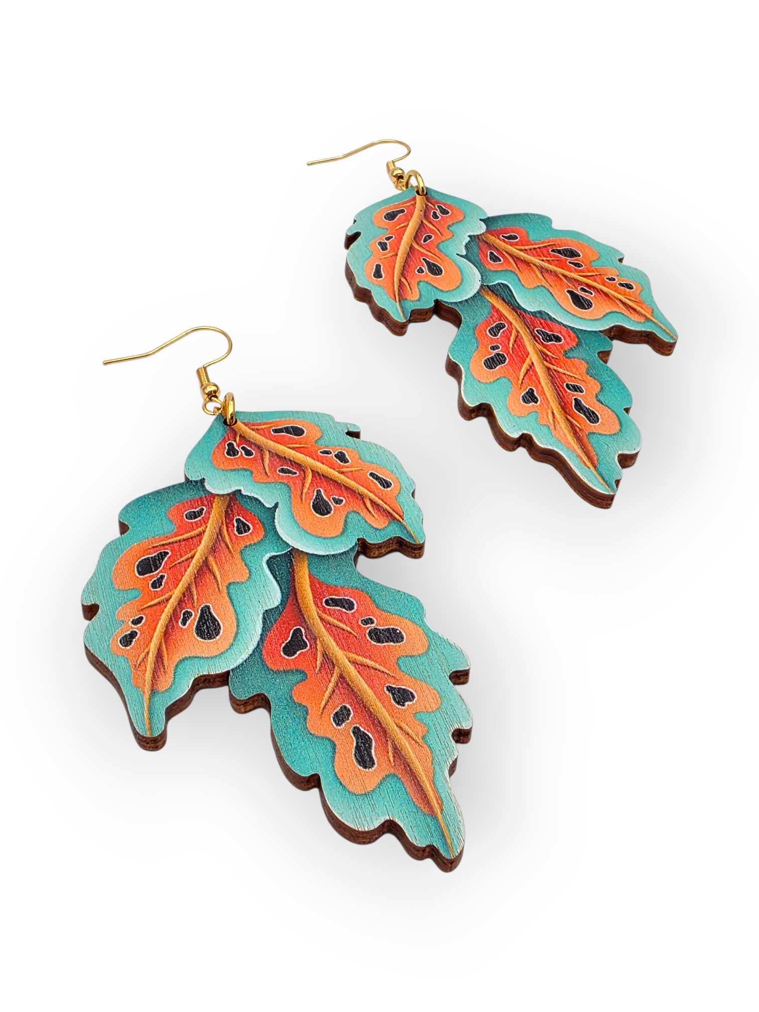 Korujen materiaali suomalaista koivuvaneria, metalliosat terästä. Mukana kumiset stopperit, jotka pitävät korvakorut paikallaan korvissasi.