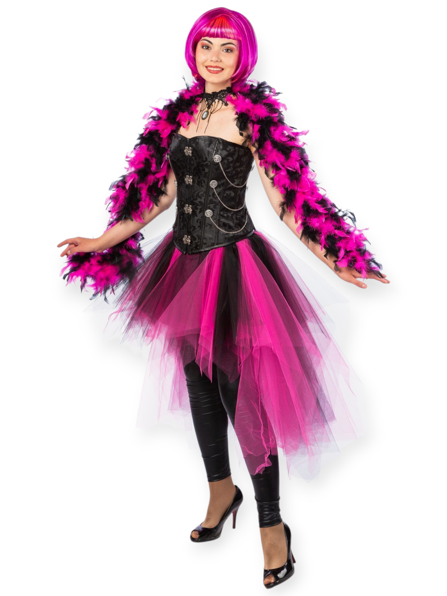 Näyttävä tyllihame, jossa mustan alushameen päällä mustaa ja pinkkiä tylliä kerroksittain. Ihana keijuhame metsäbileisiin, harlekiinin hame sirkusteemaan tai vaikka räväkkä festariasuste sinulle, joka haluat pukea päällesi jotain, mitä ei tavallisista kaupoista saa. Onneksi on Metkunen! <3
